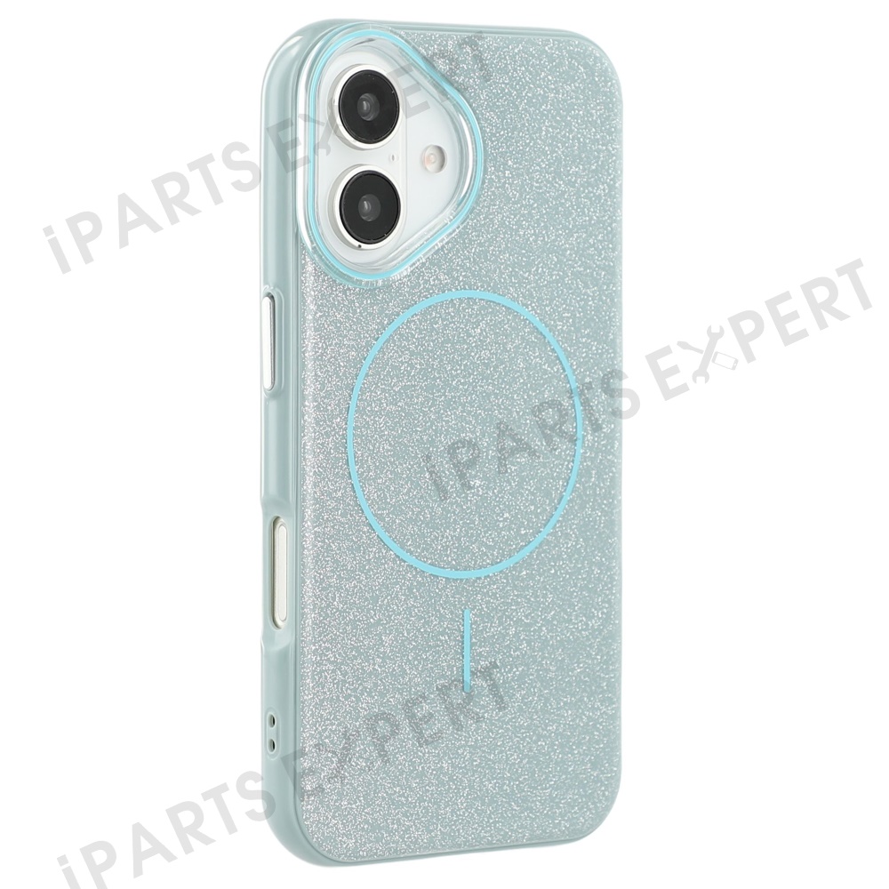 For iPhone 16 Case Compatible with MagSafe Glitter Design IMD TPU + PC Phone Back Cover - Green