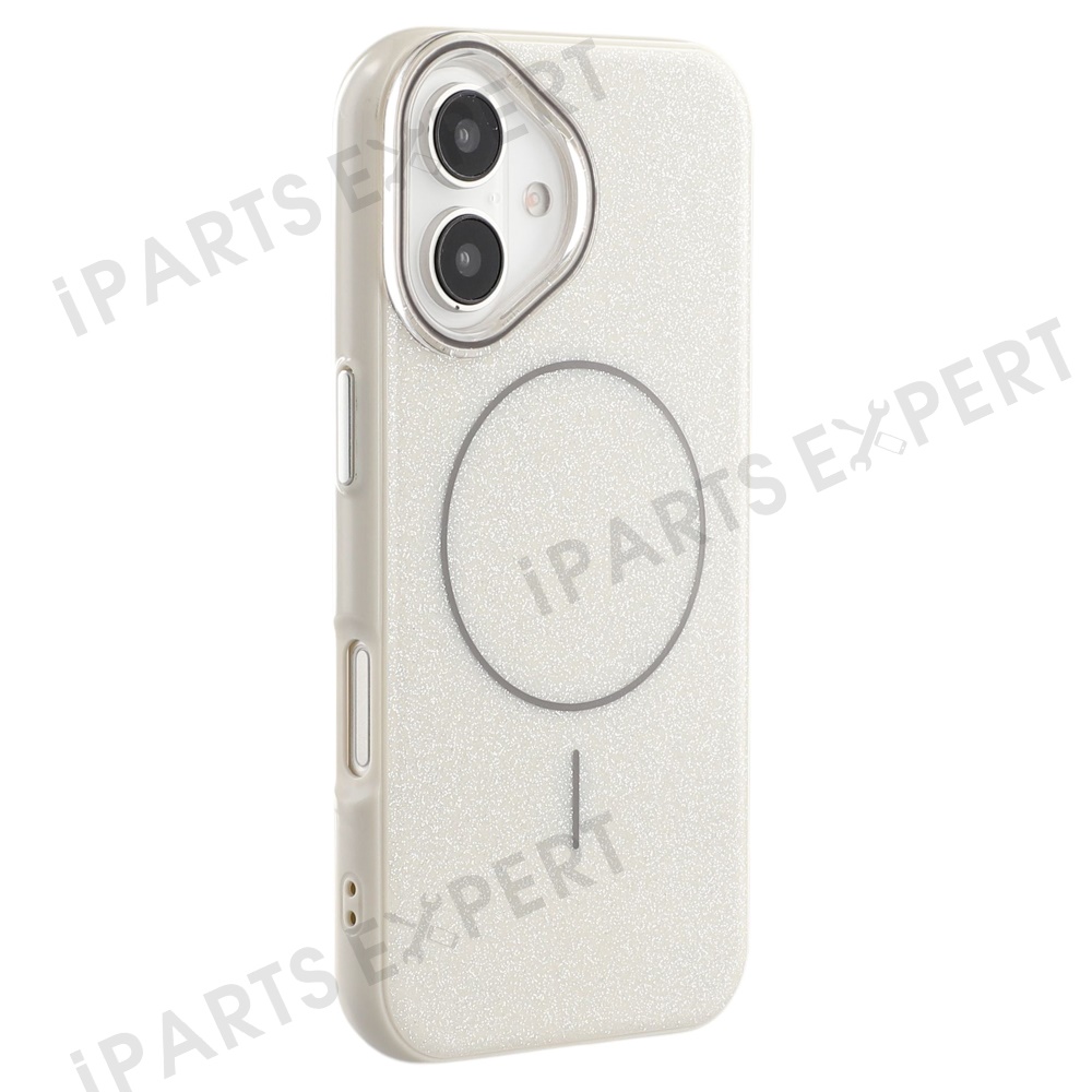 For iPhone 16 Case Compatible with MagSafe Glitter Design IMD TPU + PC Phone Back Cover - Grey