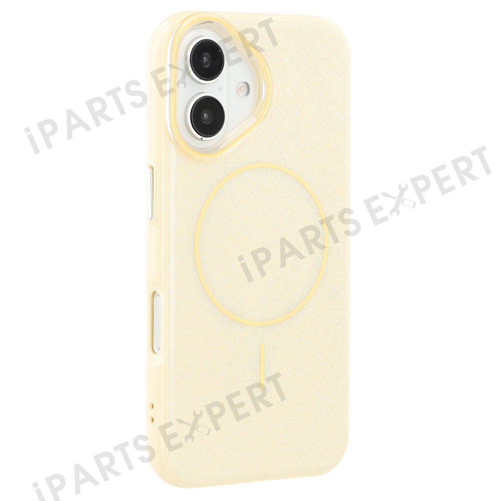 For iPhone 16 Case Compatible with MagSafe Glitter Design IMD TPU + PC Phone Back Cover - Yellow