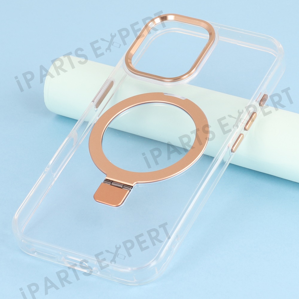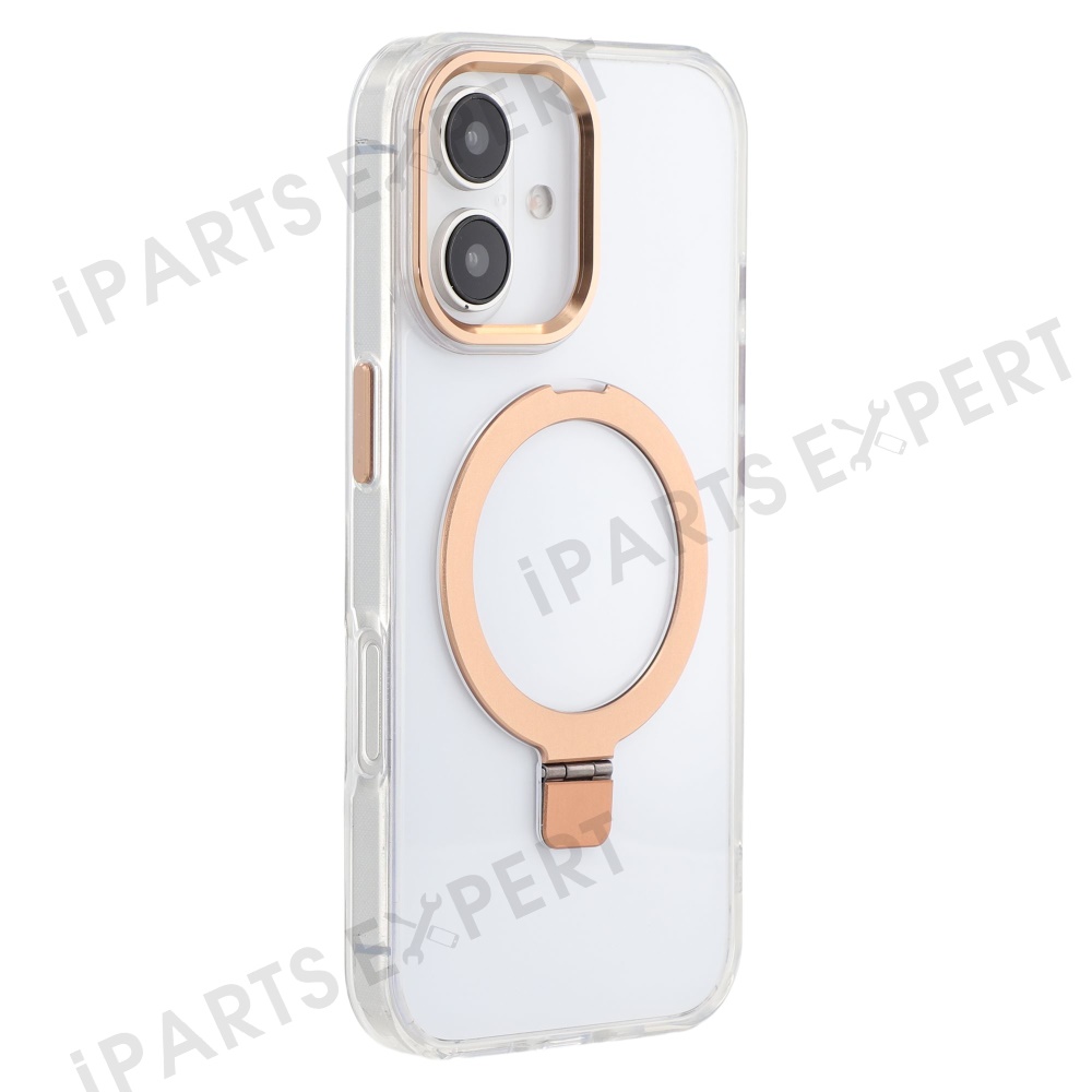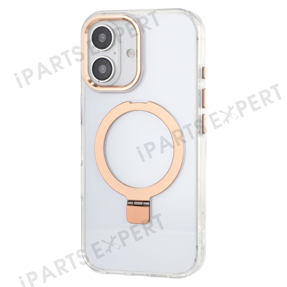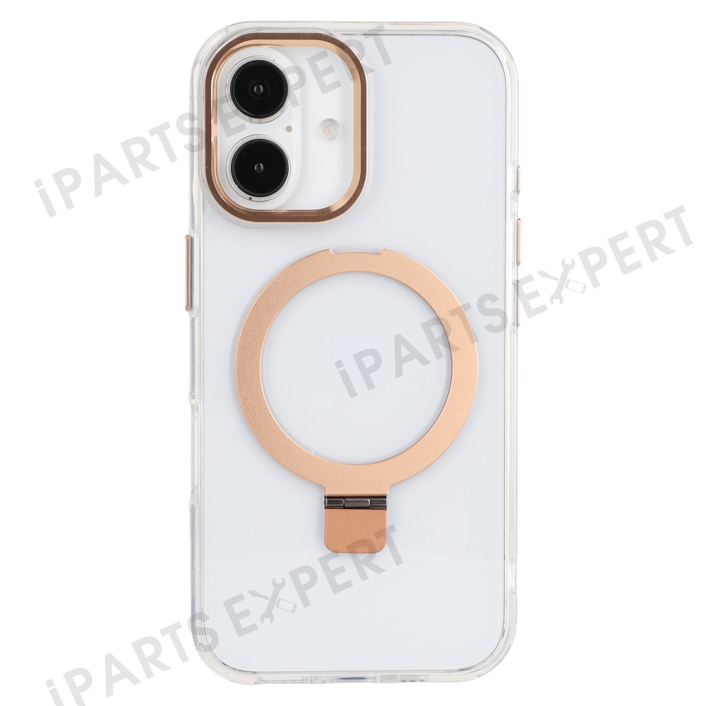 For iPhone 16 Case Compatible with MagSafe Kickstand TPU + PC Clear Phone Cover - Gold