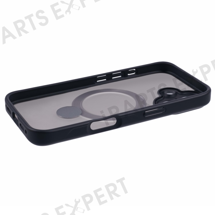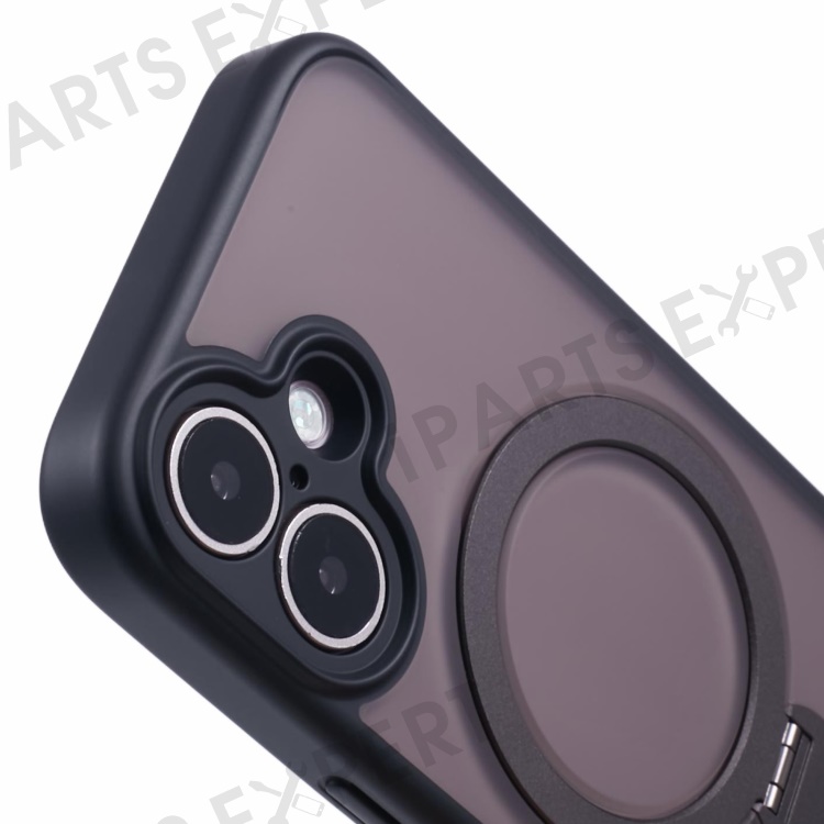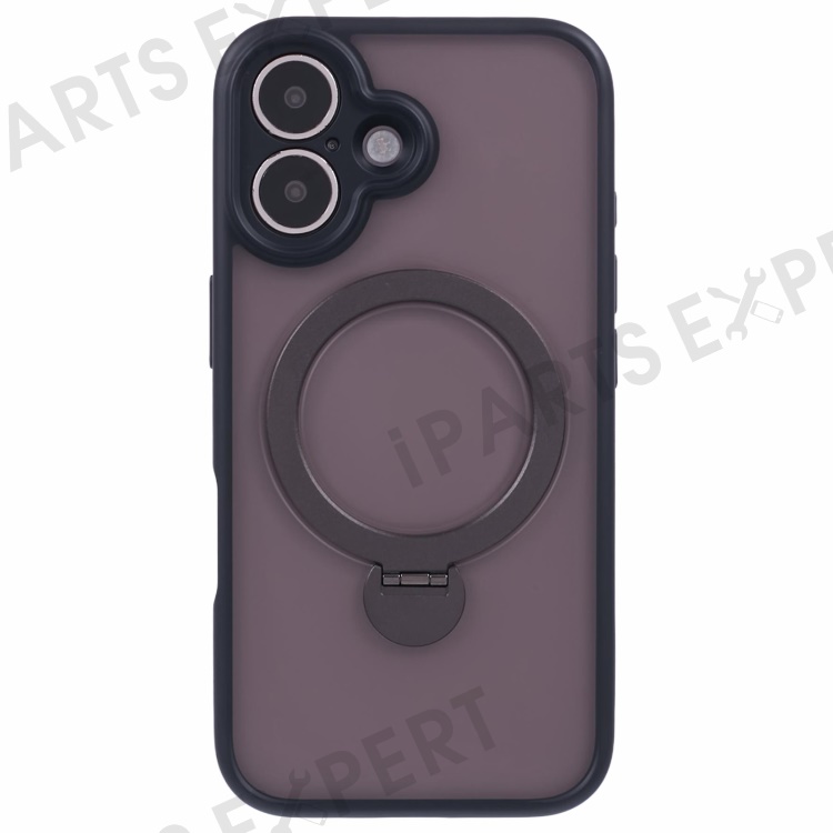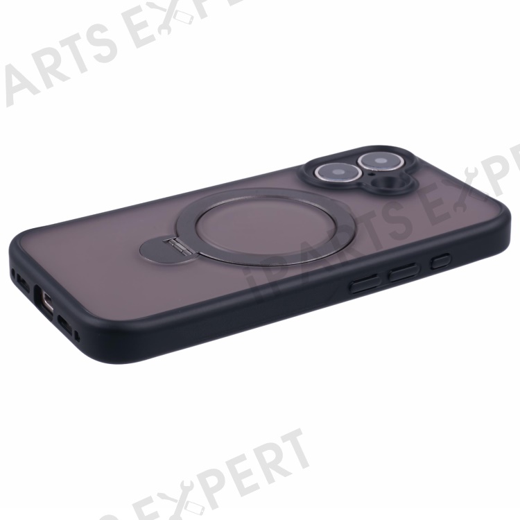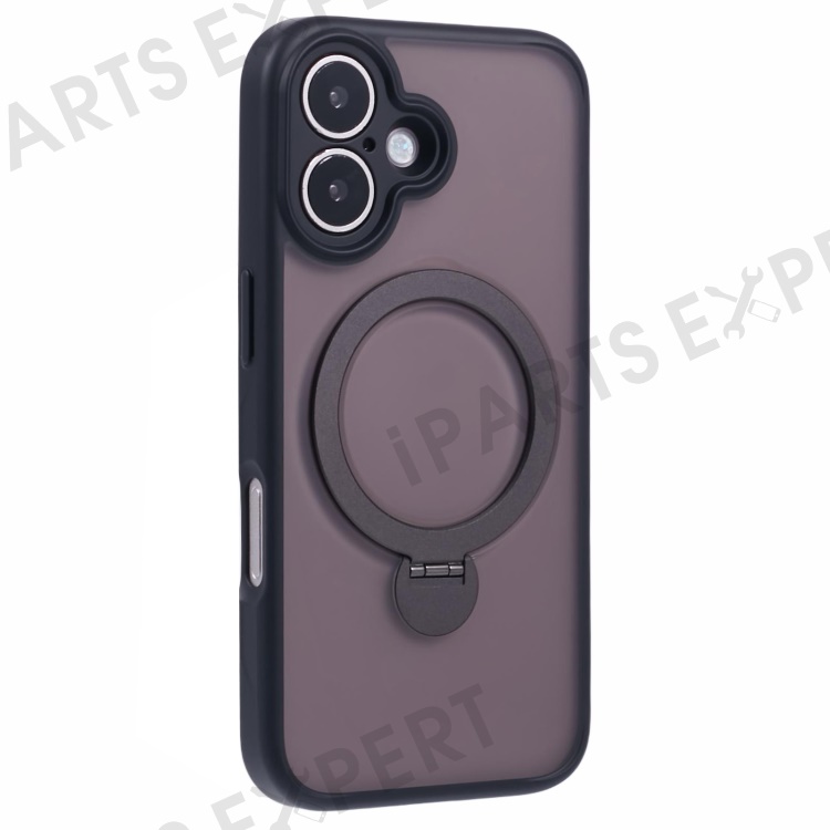 For iPhone 16 Case Compatible with MagSafe Matte TPU+PC Rotary Kickstand Phone Cover - Black