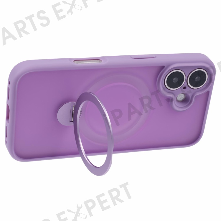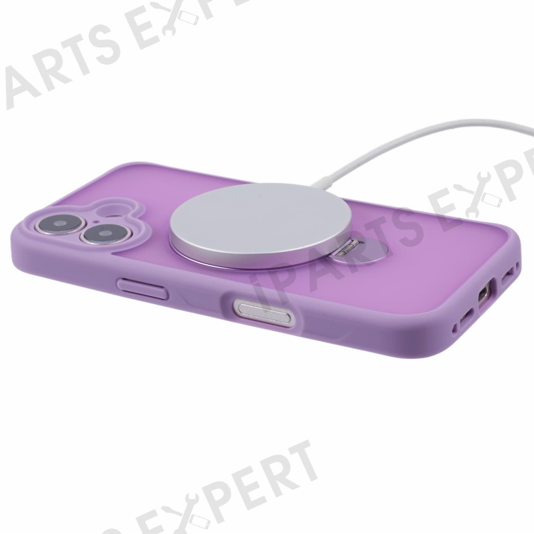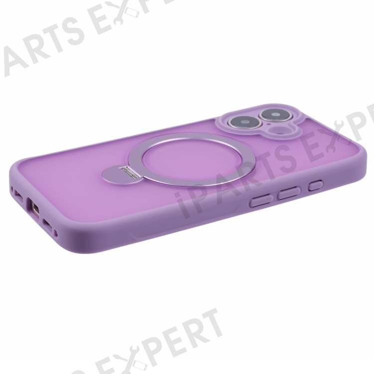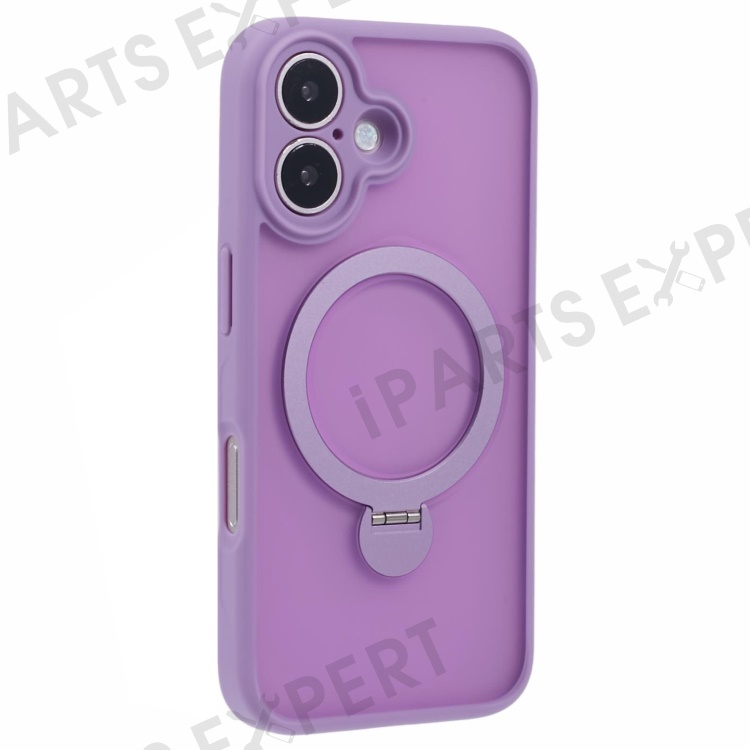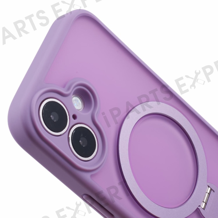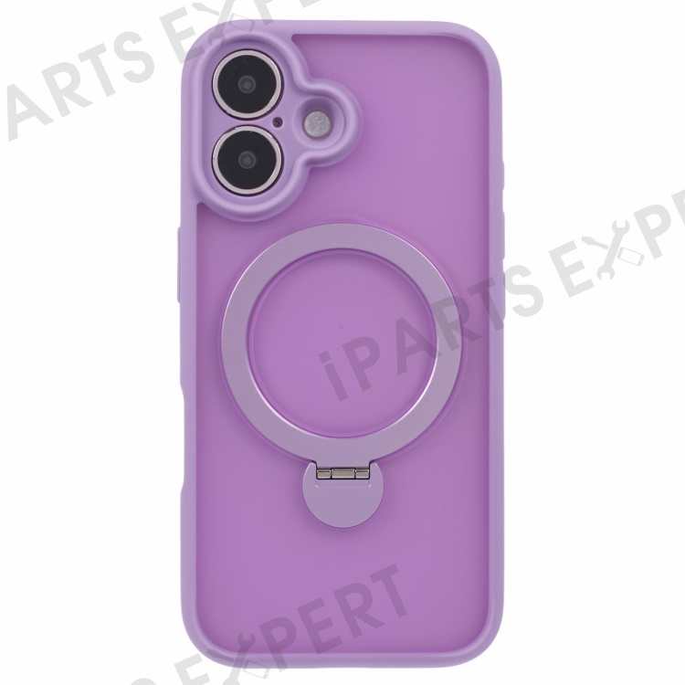 For iPhone 16 Case Compatible with MagSafe Matte TPU+PC Rotary Kickstand Phone Cover - Purple