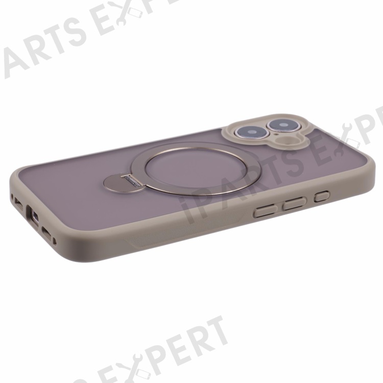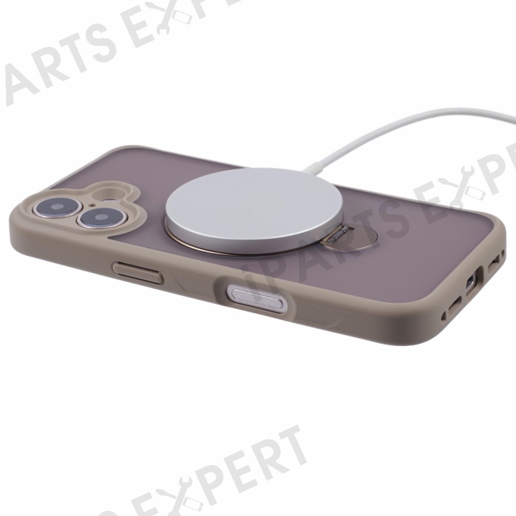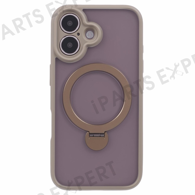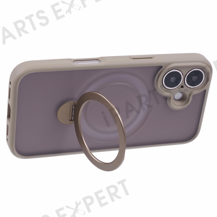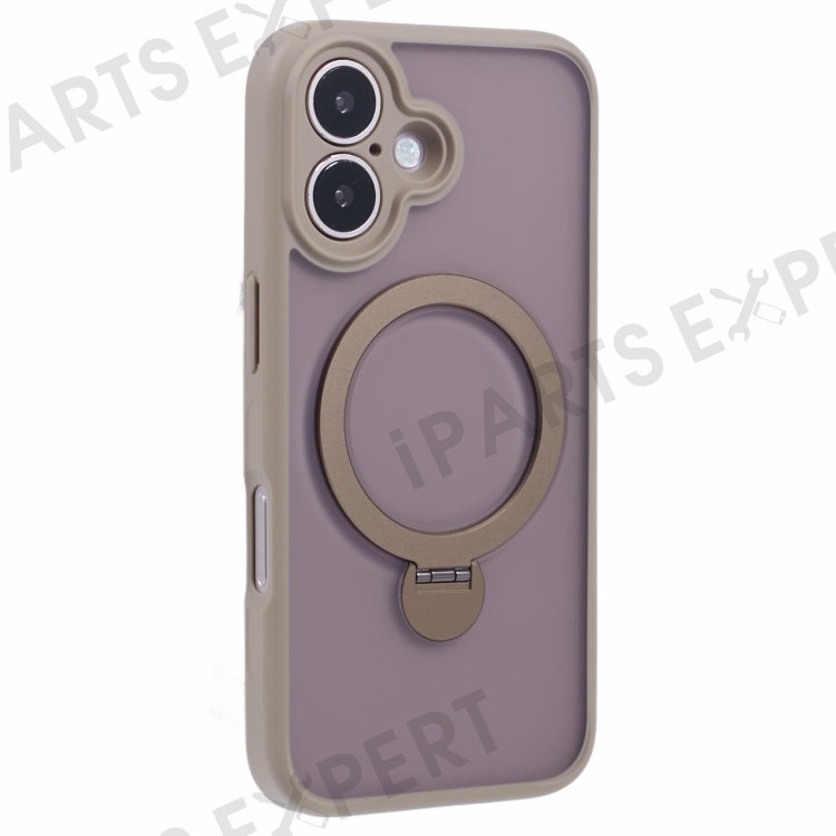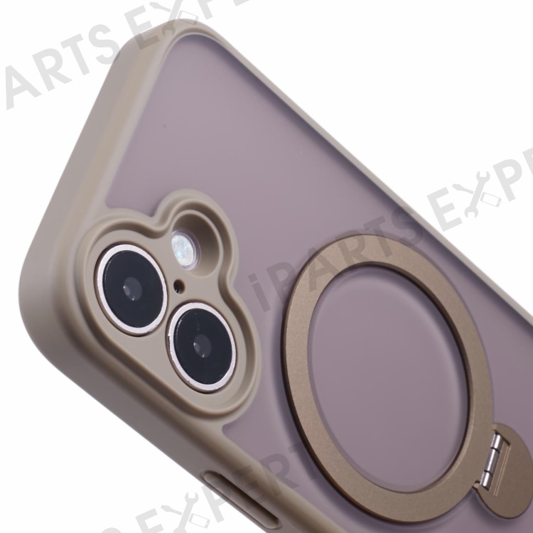 For iPhone 16 Case Compatible with MagSafe Matte TPU+PC Rotary Kickstand Phone Cover - Titanium Gold