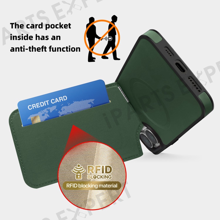 For iPhone 16 Case Compatible with MagSafe RFID Blocking Card Slot Leather Back Cover - Green