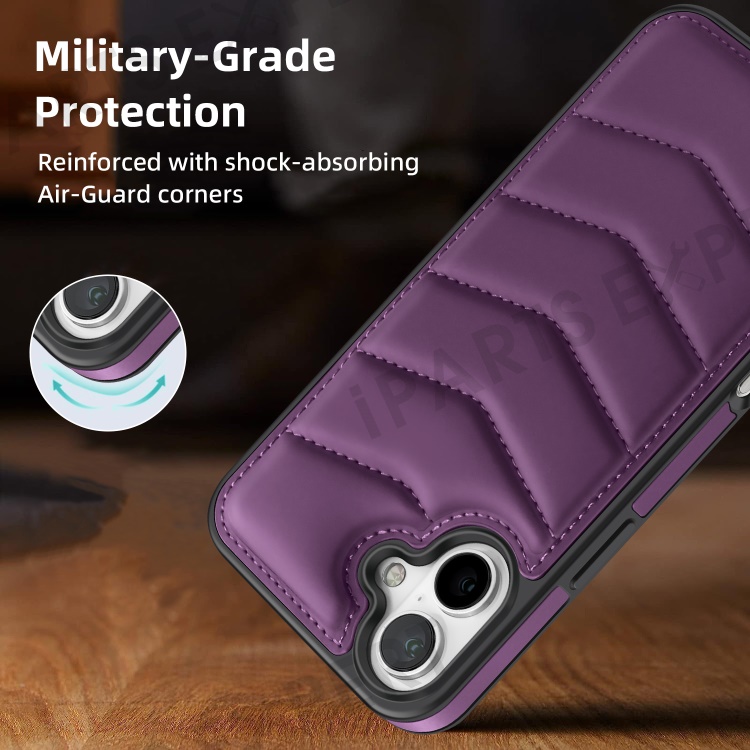 For iPhone 16 Case Compatible with MagSafe RFID Blocking Card Slot Leather Back Cover - Purple