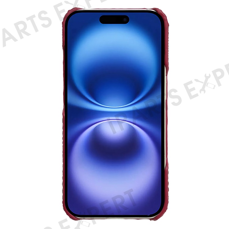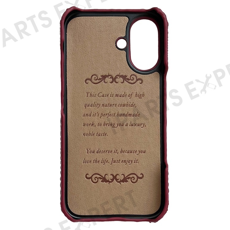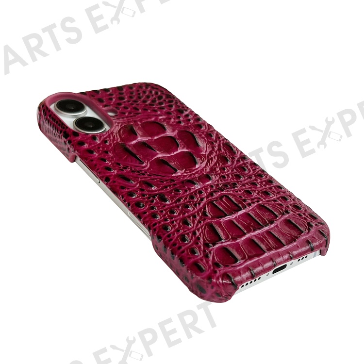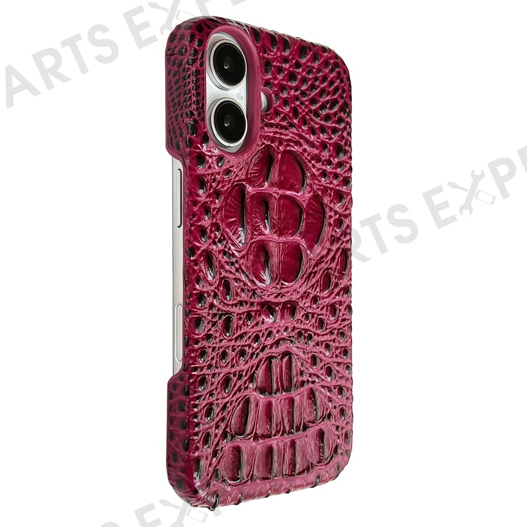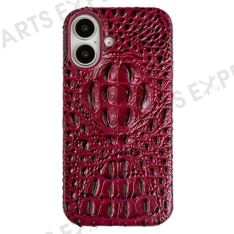 For iPhone 16 Case Crocodile Head Genuine Cow Leather Coated PC Phone Cover - Red