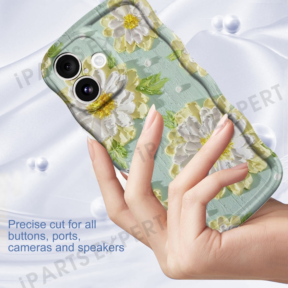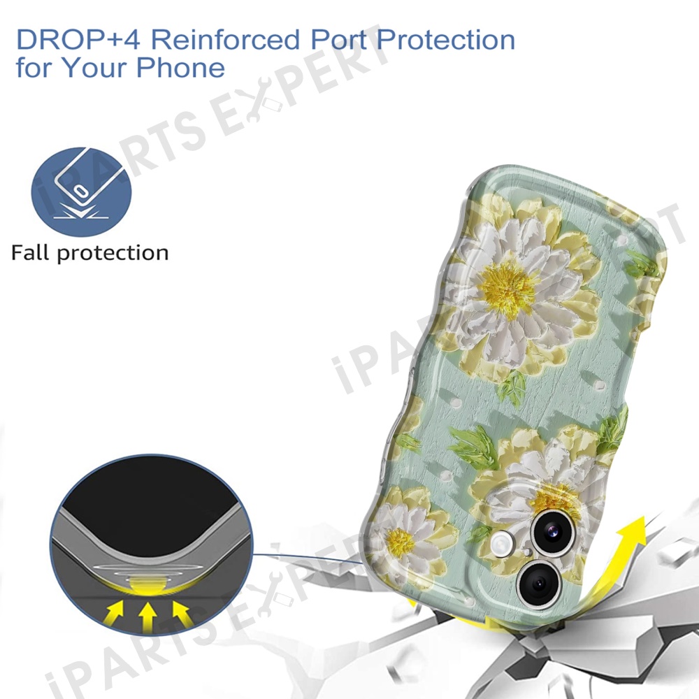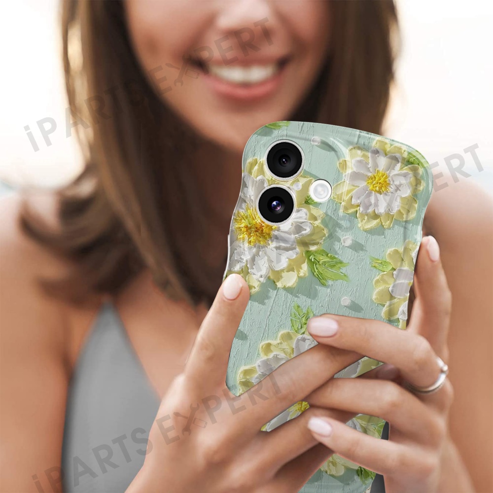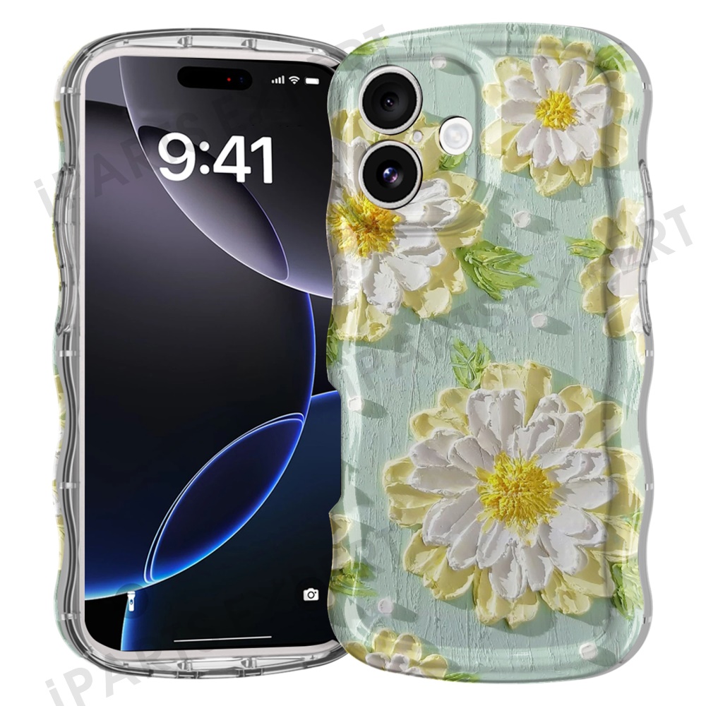 For iPhone 16 Case Curly Wave Frame Floral IMD TPU Phone Cover - GWL10220