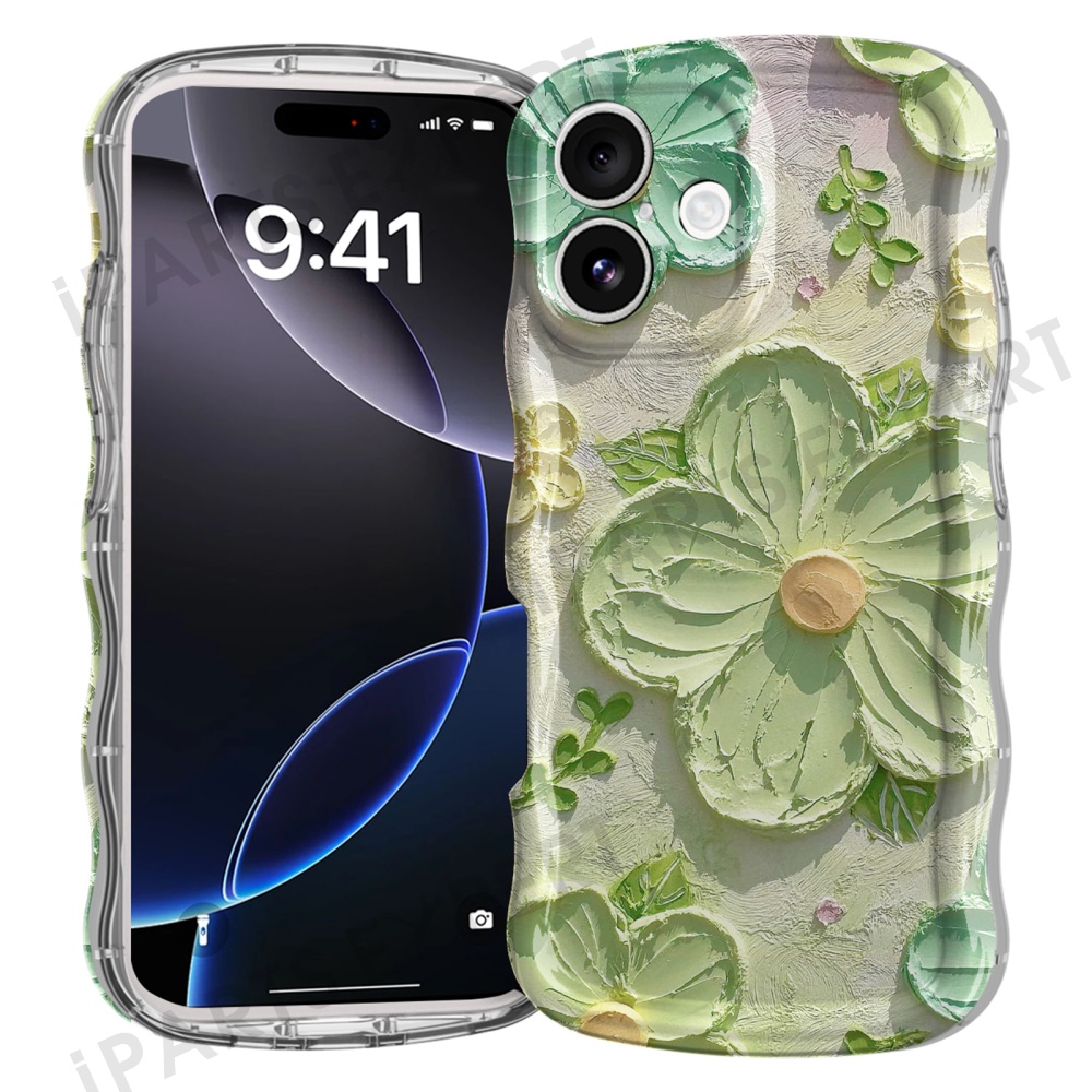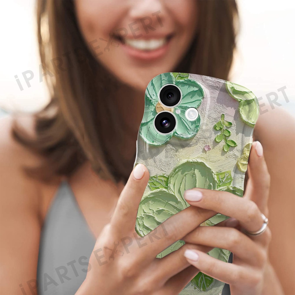 For iPhone 16 Case Curly Wave Frame Floral IMD TPU Phone Cover - GWL10221
