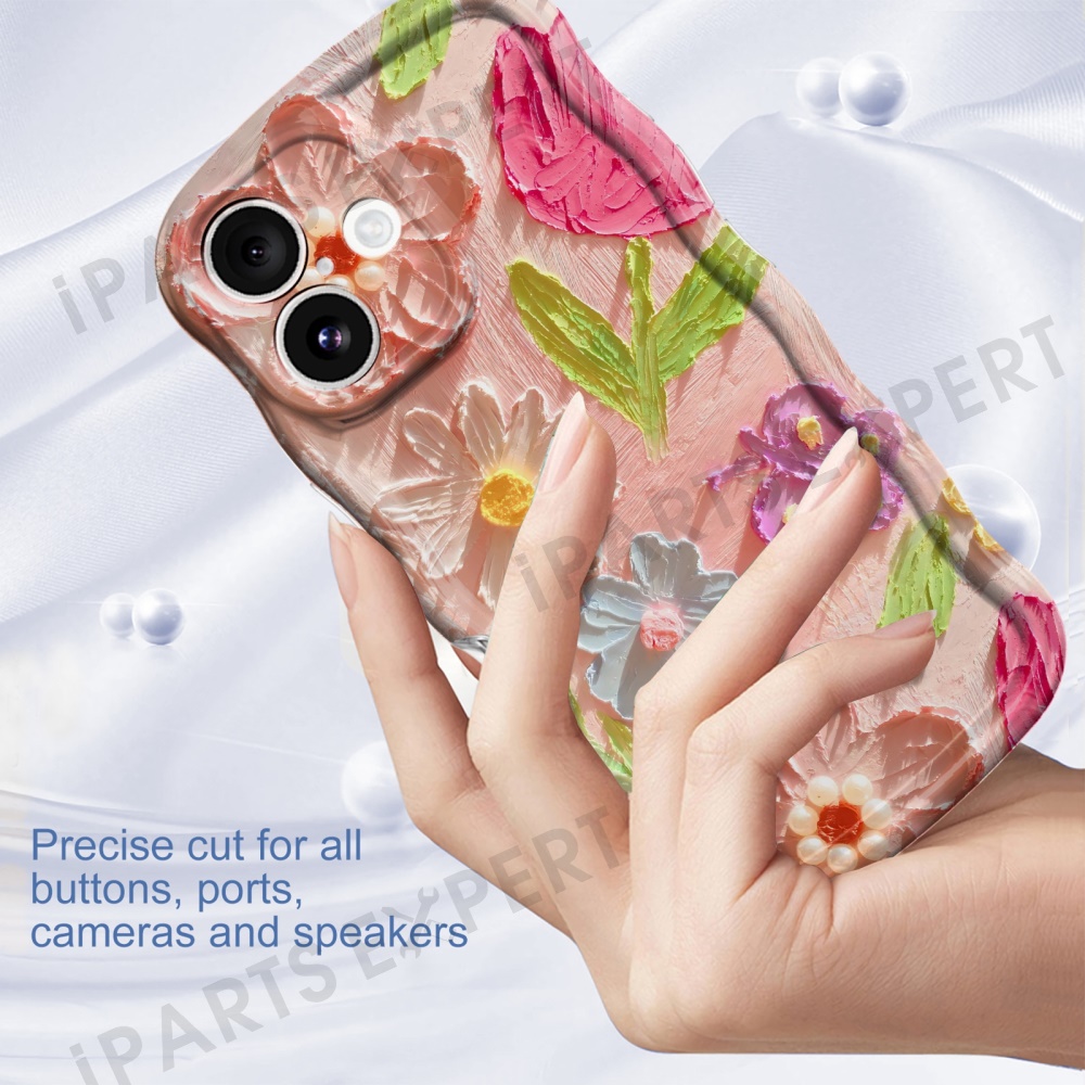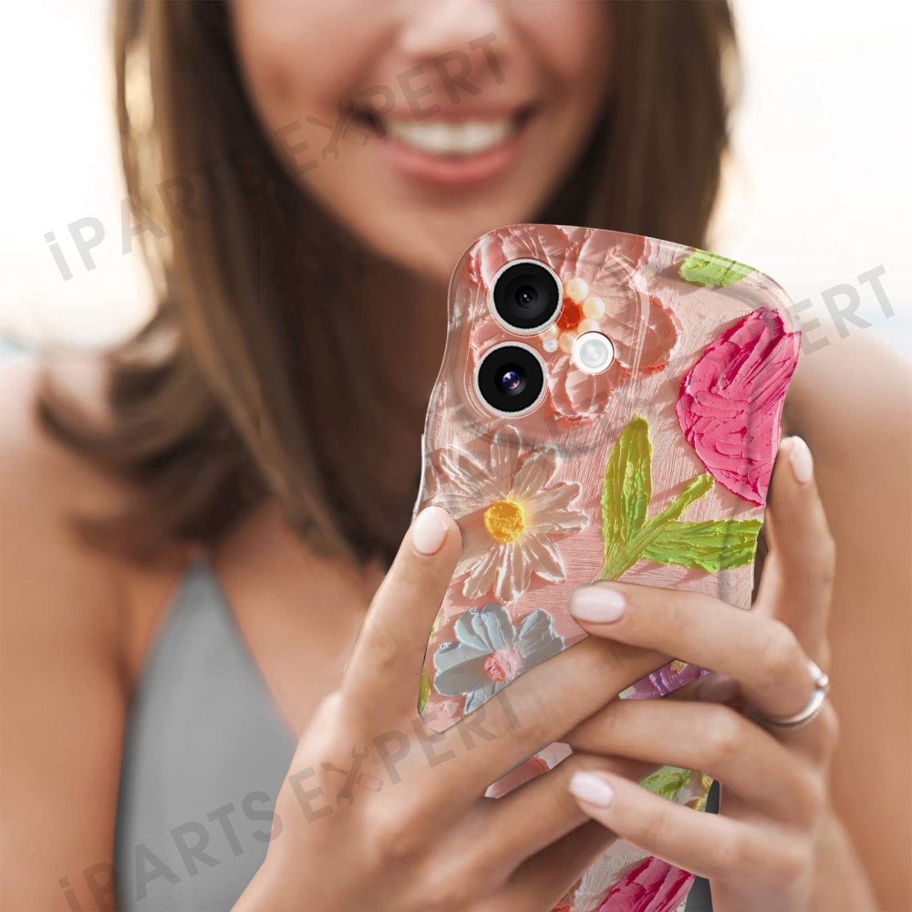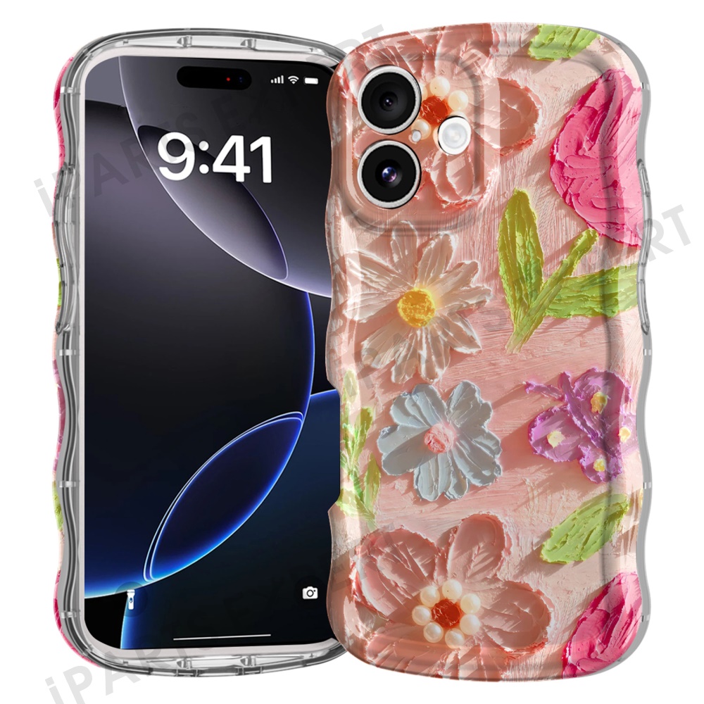 For iPhone 16 Case Curly Wave Frame Floral IMD TPU Phone Cover - GWL10224