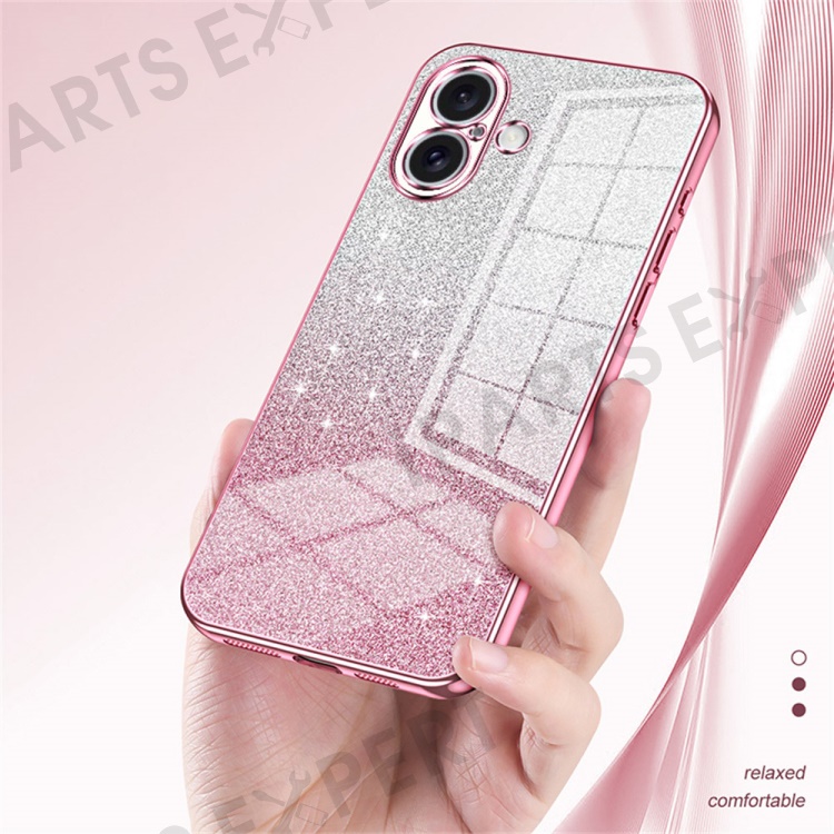 For iPhone 16 Case Electroplating Gradient Glitter TPU Phone Cover - Gold