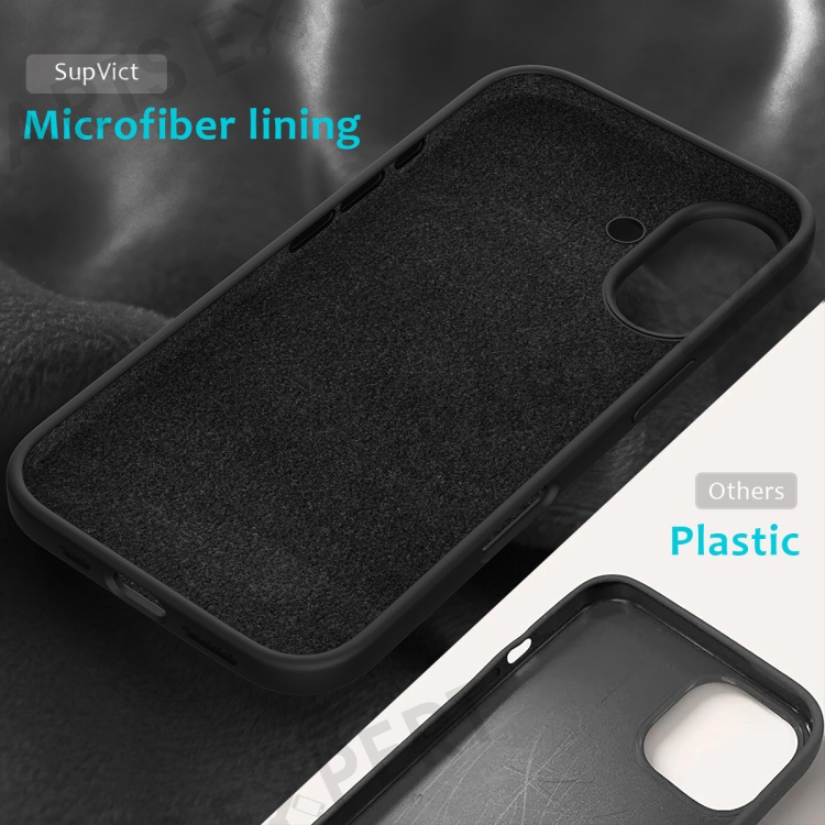For iPhone 16 Case Liquid Silicone Soft Lining Shockproof Phone Cover - Black