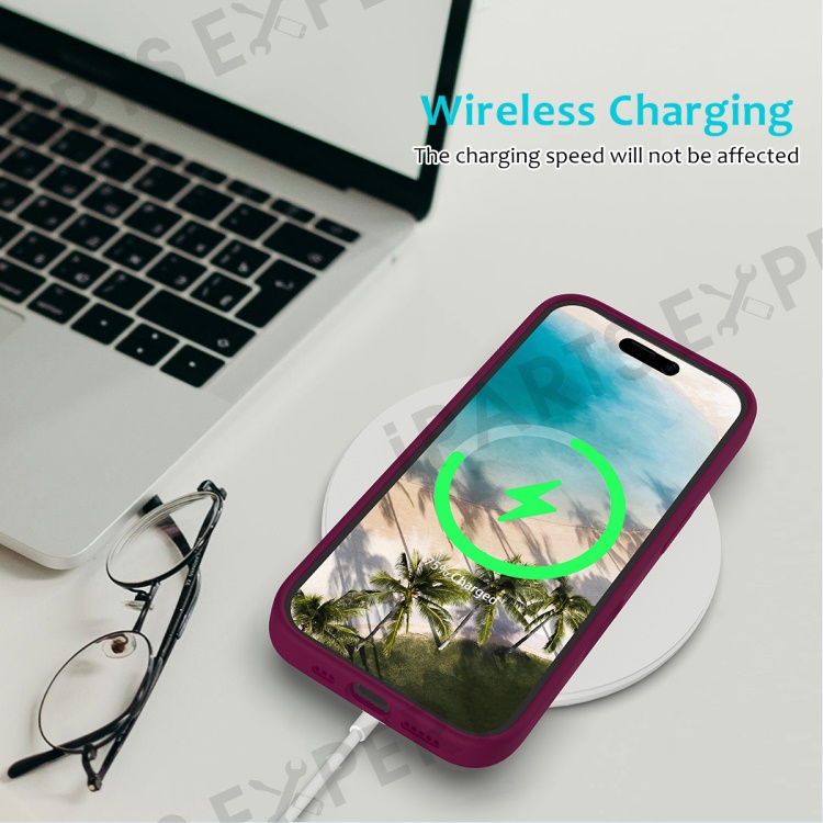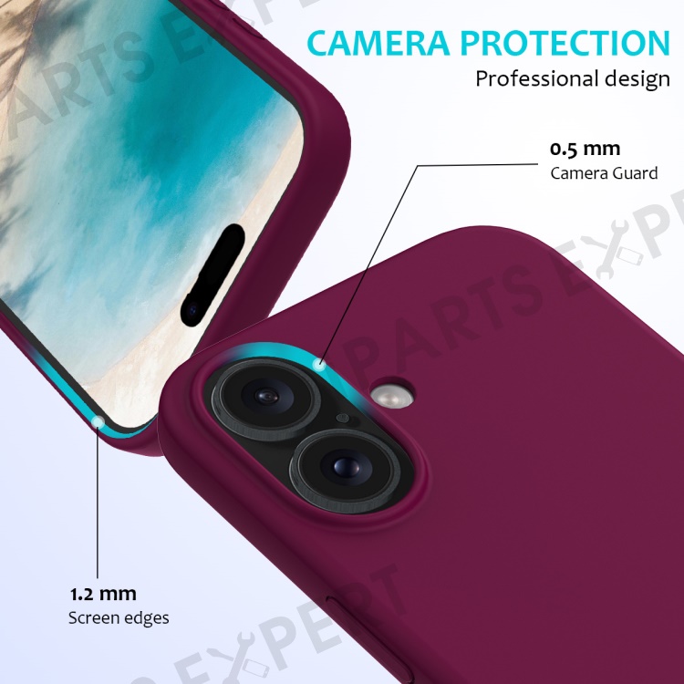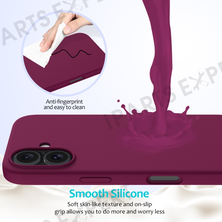 For iPhone 16 Case Liquid Silicone Soft Lining Shockproof Phone Cover - Wine Red