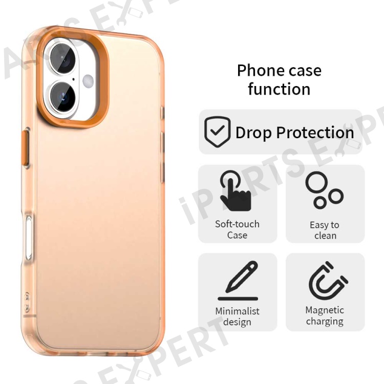 For iPhone 16 Case PC+TPU+PET Matte Anti-Drop Phone Back Cover - Orange