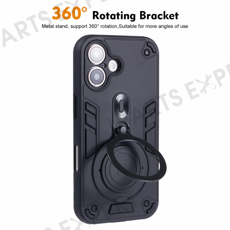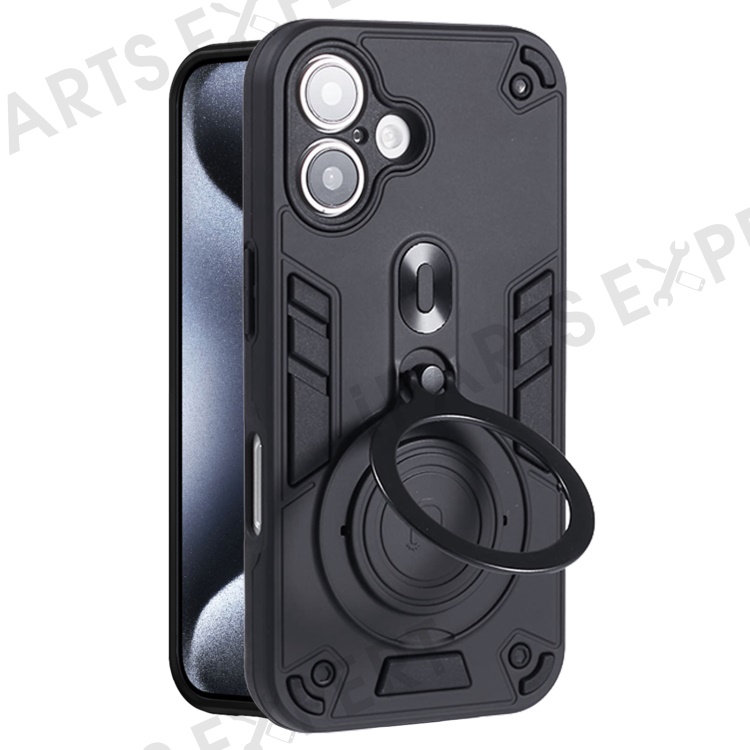 For iPhone 16 Case Rotatable Kickstand PC+TPU Drop Protection Phone Cover - Black