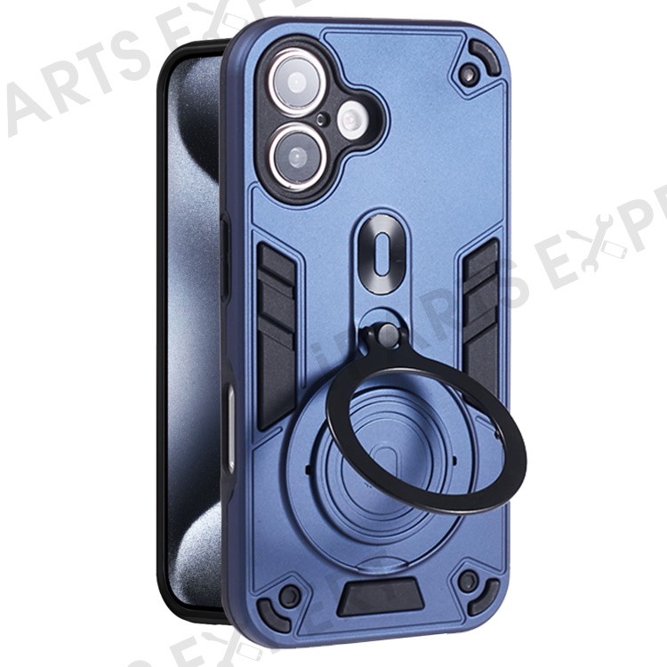 For iPhone 16 Case Rotatable Kickstand PC+TPU Drop Protection Phone Cover - Blue