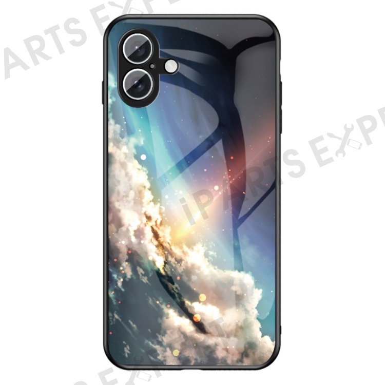 For iPhone 16 Case Starry Sky Pattern Tempered Glass Phone Cover - Bright Starry Sky