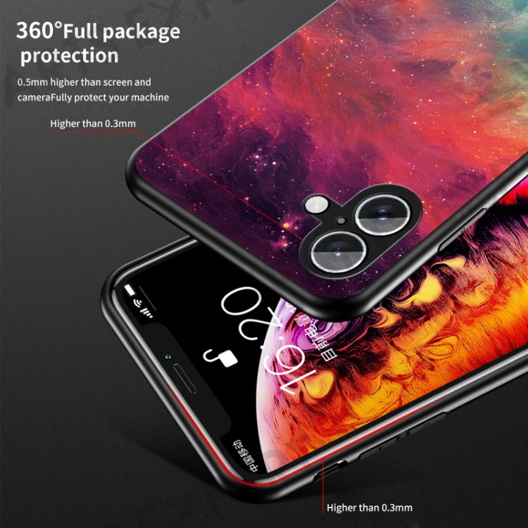 For iPhone 16 Case Starry Sky Pattern Tempered Glass Phone Cover - Cosmic Starry Sky