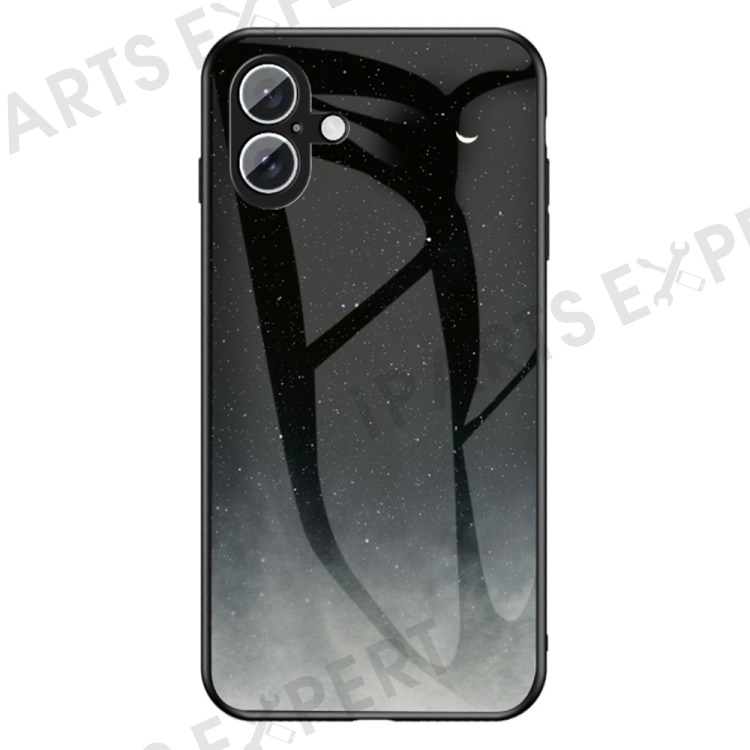 For iPhone 16 Case Starry Sky Pattern Tempered Glass Phone Cover - Starry Crescent Moon