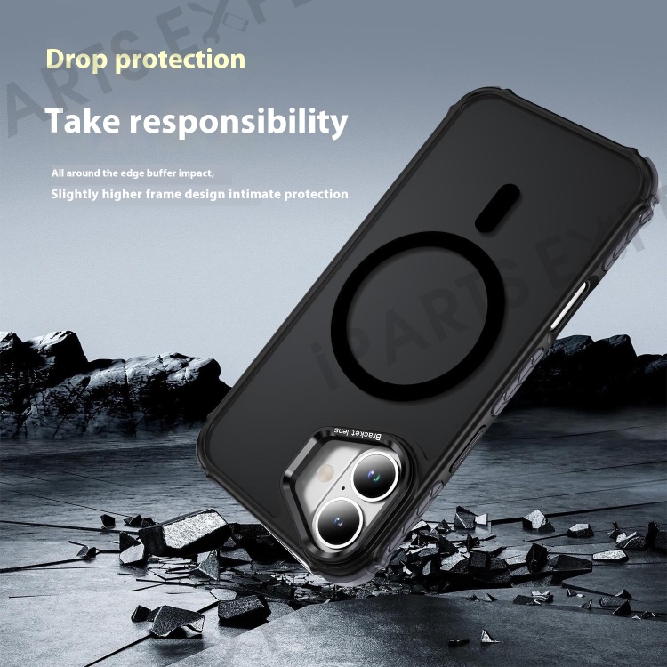 For iPhone 16 Case with Lens Kickstand Matte Back Cover Compatible with MagSafe - Black