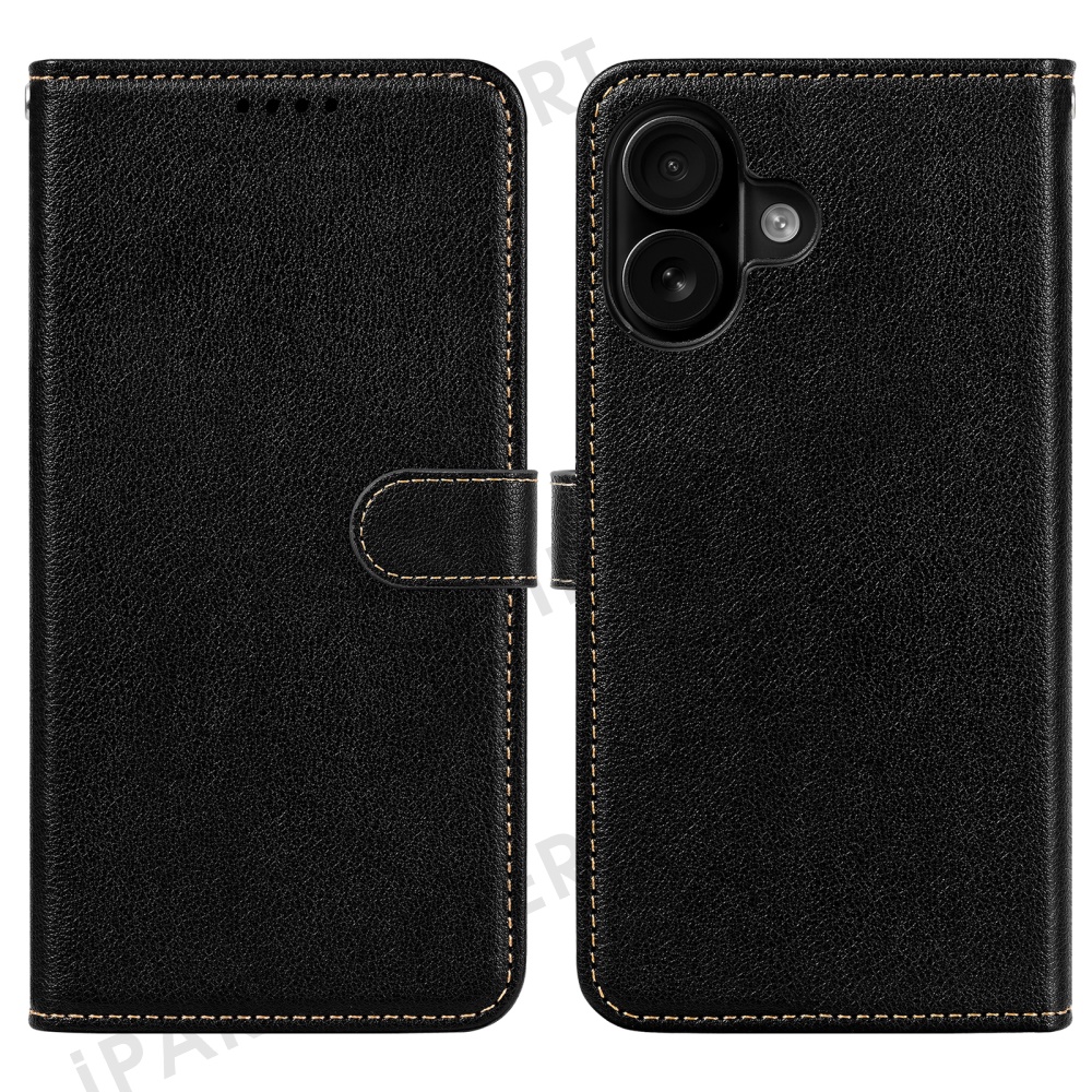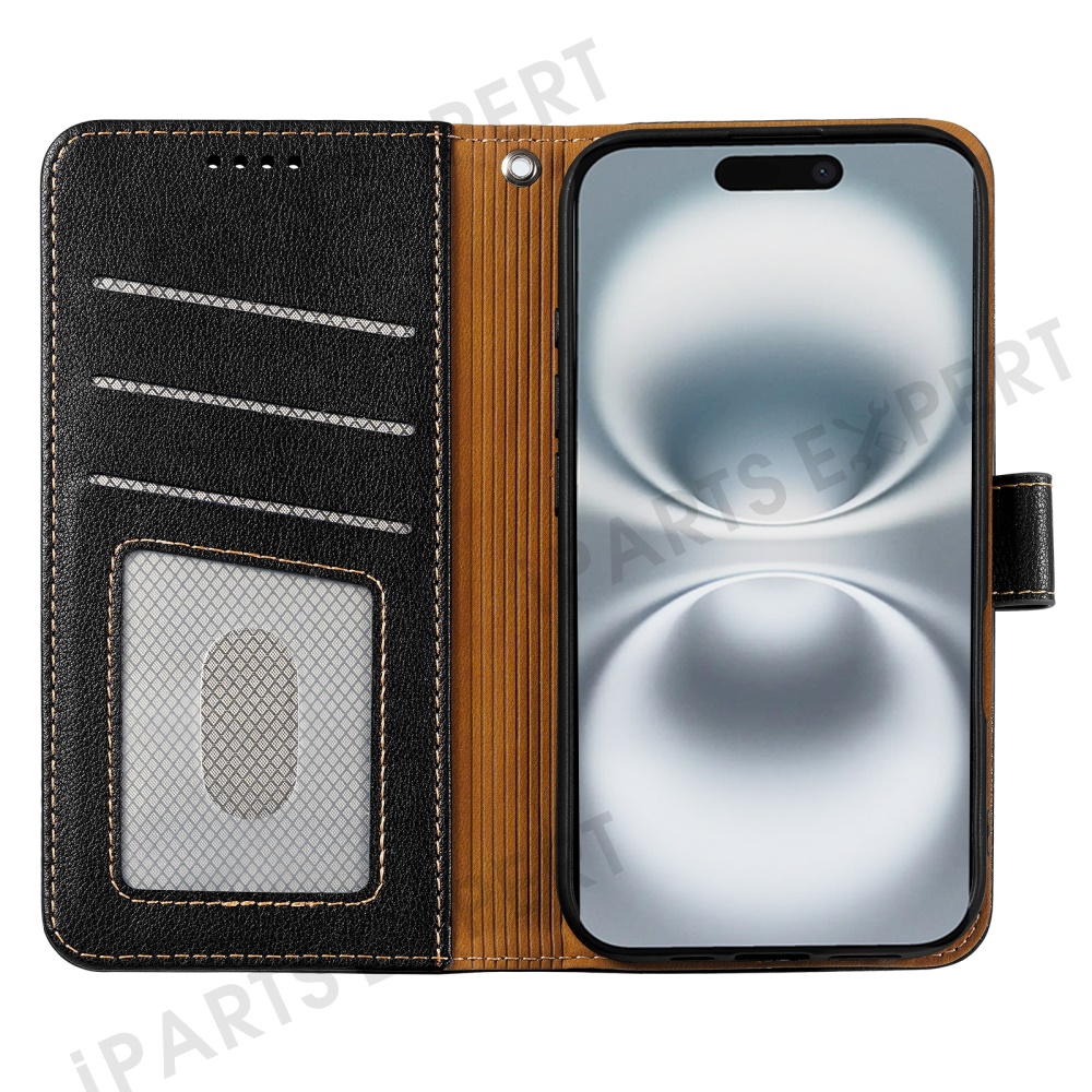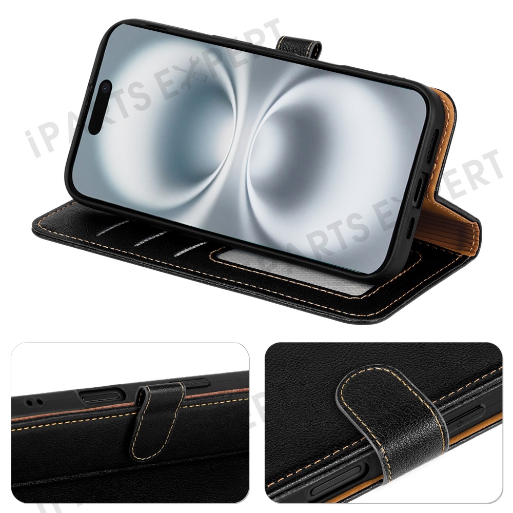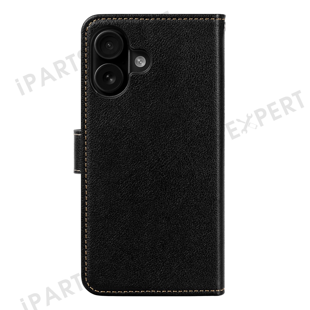 For iPhone 16 Leather Case Litchi Texture Wallet RFID Blocking Phone Cover - Black