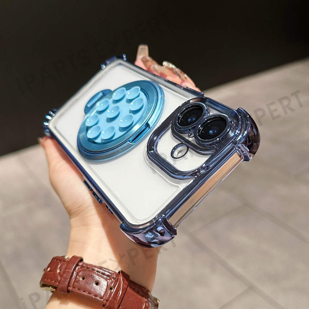 For iPhone 16 Magnetic Case Suction Cup Kickstand PC Phone Cover with Four Corner Airbag - Blue