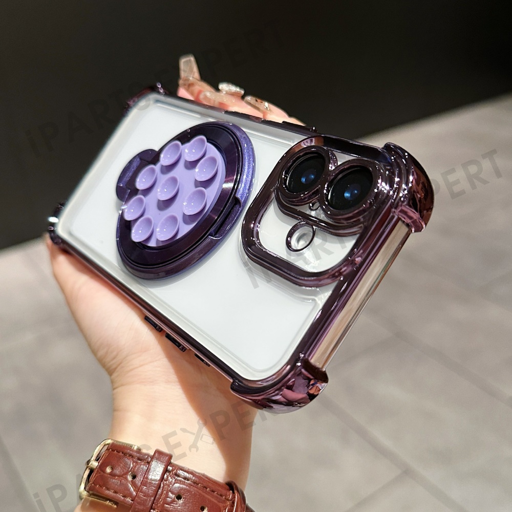 For iPhone 16 Magnetic Case Suction Cup Kickstand PC Phone Cover with Four Corner Airbag - Purple
