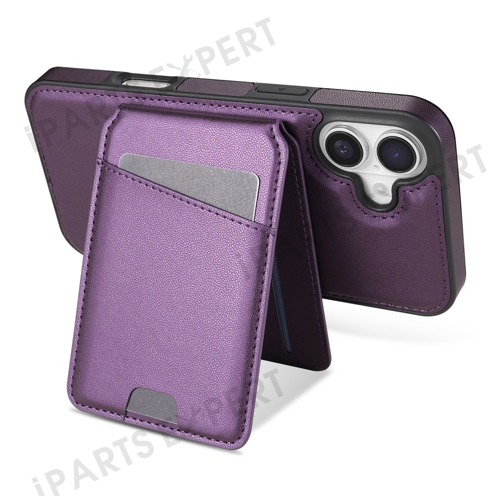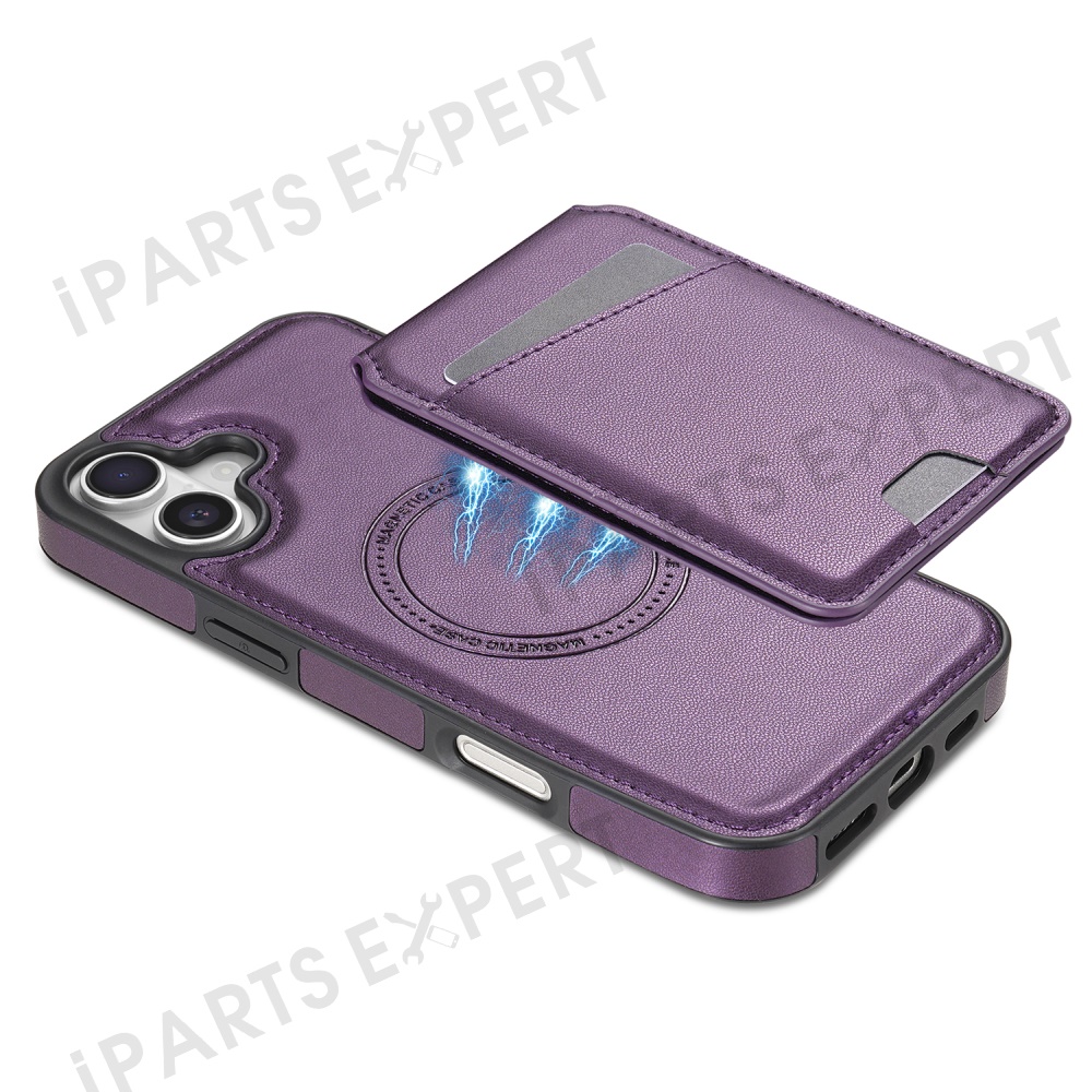 For iPhone 16 Plus Case Compatible with MagSafe Detachable Card Holder Kickstand Leather Phone Back Cover - Purple