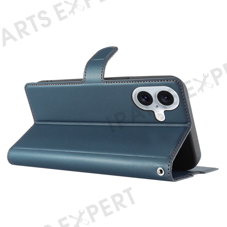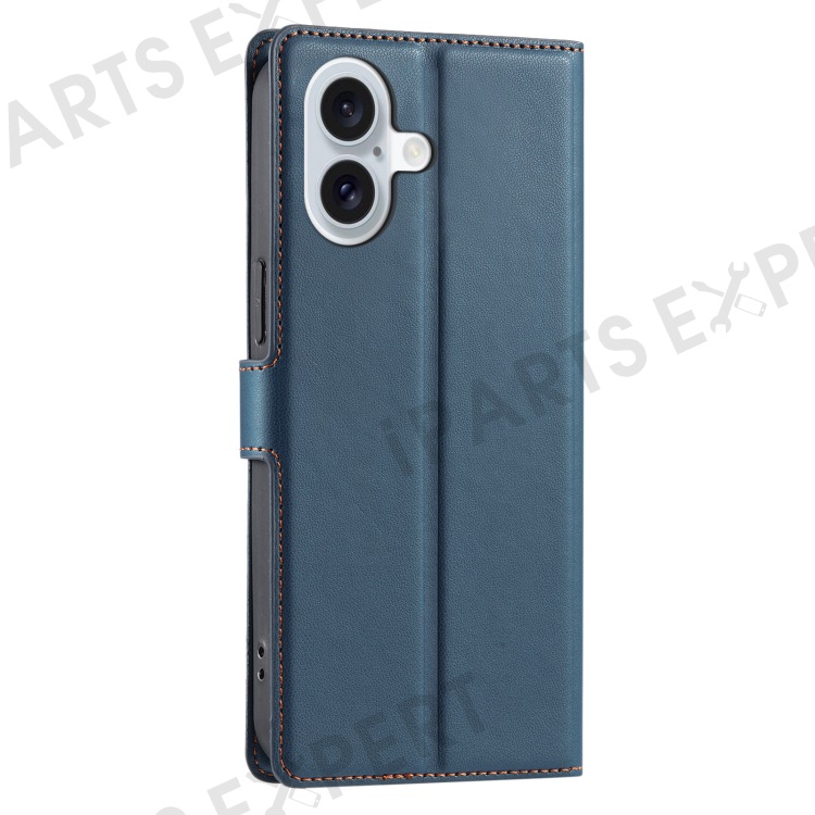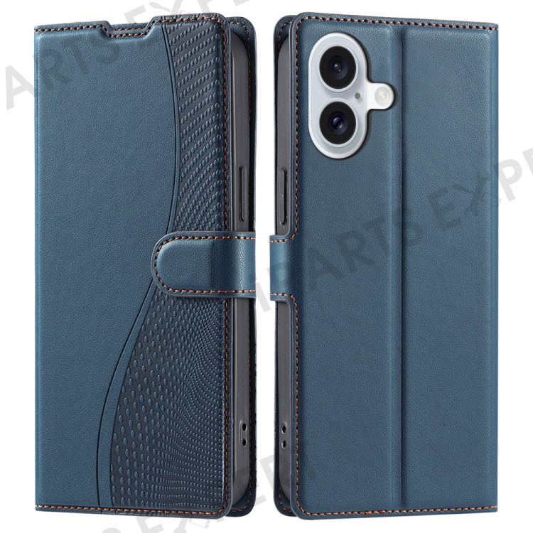 For iPhone 16 Plus Case Dots Imprinted PU Leather Flip Phone Cover with Card Slot, Strap - Blue