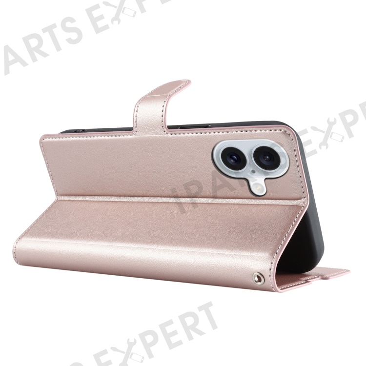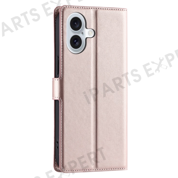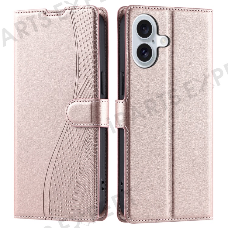 For iPhone 16 Plus Case Dots Imprinted PU Leather Flip Phone Cover with Card Slot, Strap - Rose Gold