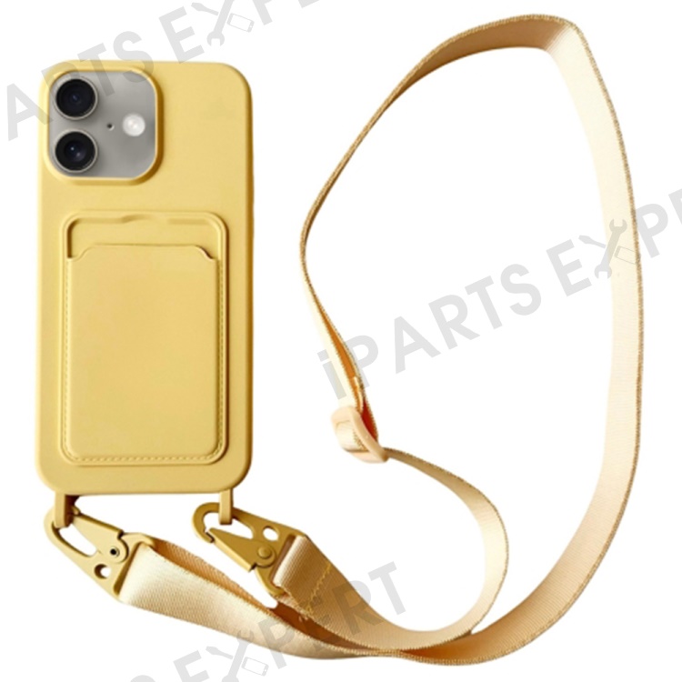 For iPhone 16 Plus Case Liquid Silicone Card Slot Soft Phone Cover with Lanyard Strap - Yellow