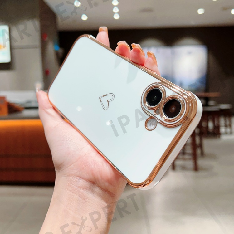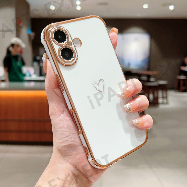 For iPhone 16 Plus Case Love Heart Pattern TPU Phone Cover Electroplating Edge - Ivory White