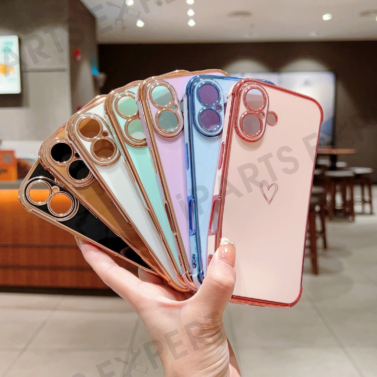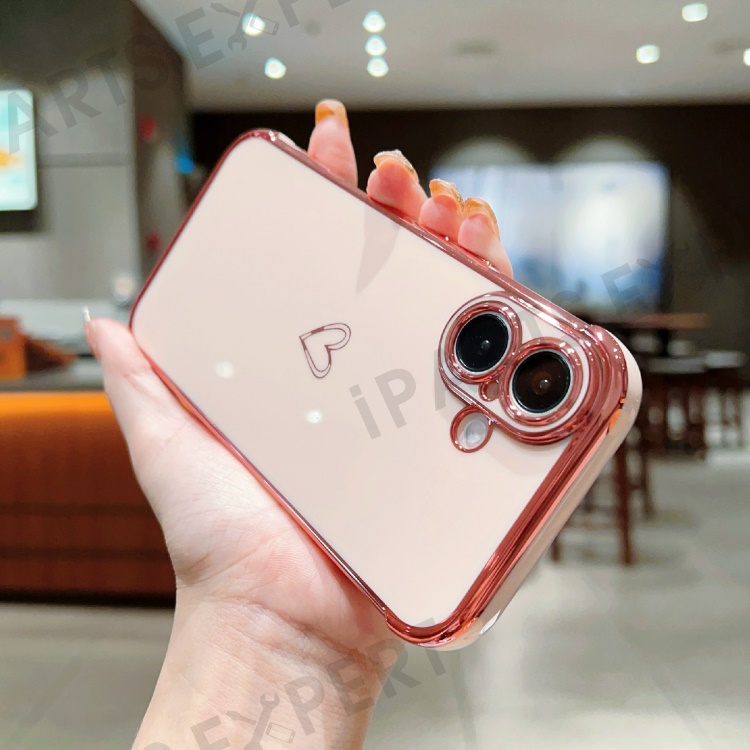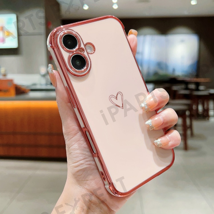 For iPhone 16 Plus Case Love Heart Pattern TPU Phone Cover Electroplating Edge - Pink