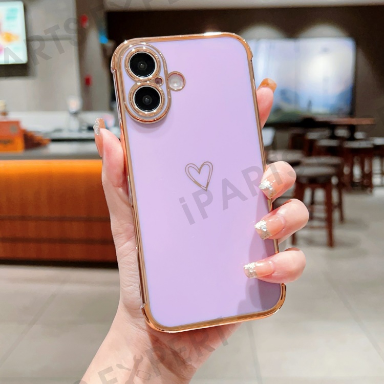 For iPhone 16 Plus Case Love Heart Pattern TPU Phone Cover Electroplating Edge - Purple
