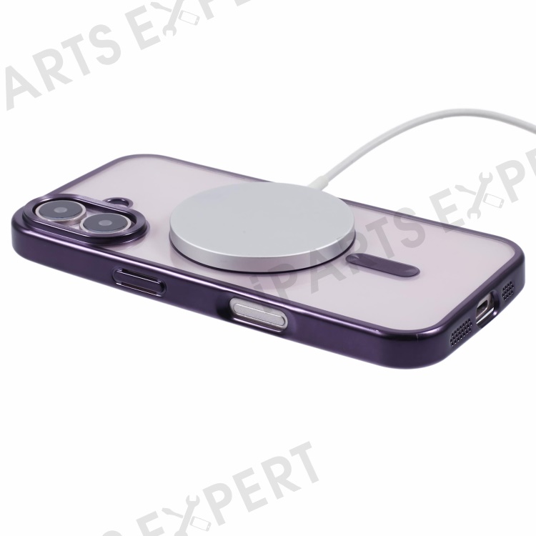 For iPhone 16 Plus Case Matte Electroplating Phone Cover Compatible with MagSafe - Dark Purple