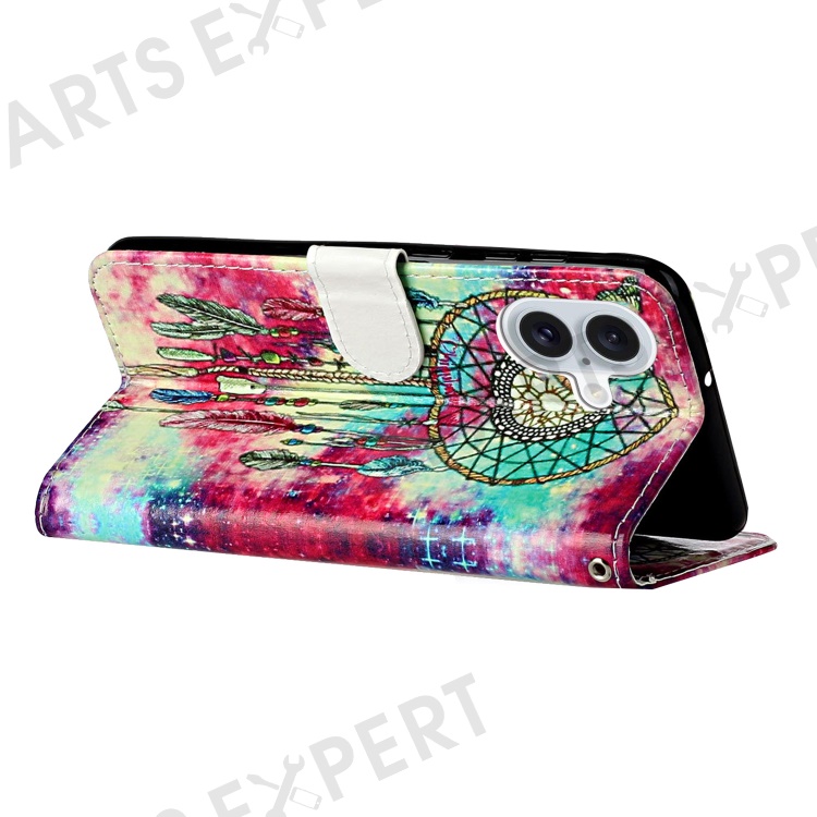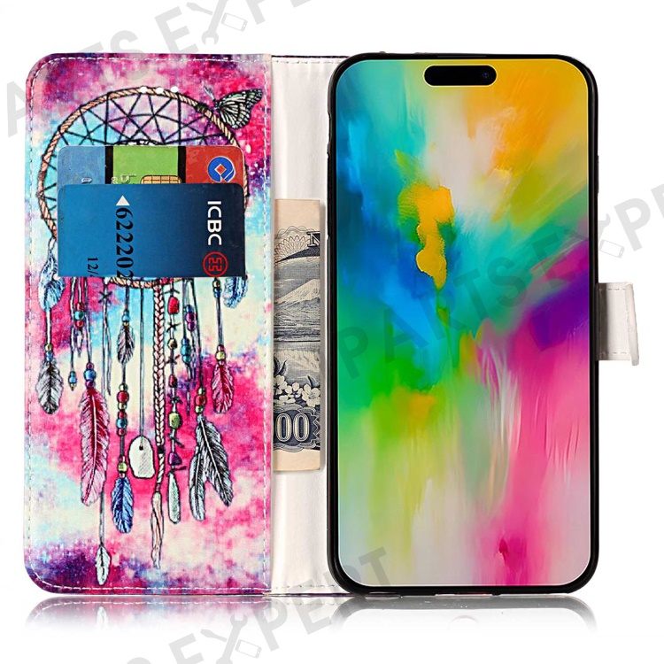 For iPhone 16 Plus Case Shockproof Leather Wallet Phone Cover Pattern Printing - Dream Catcher