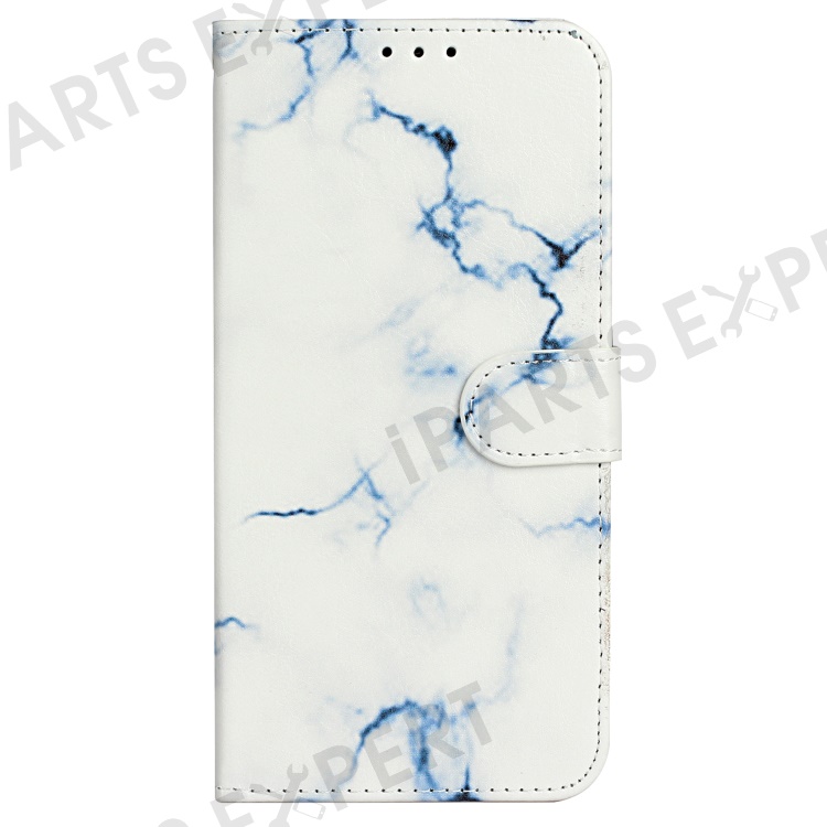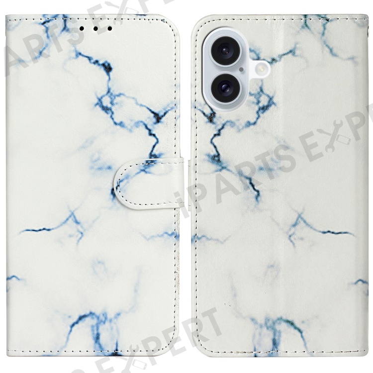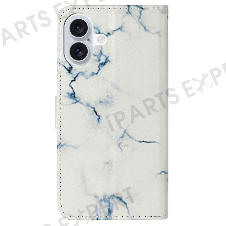 For iPhone 16 Plus Case Shockproof Leather Wallet Phone Cover Pattern Printing - White Marble