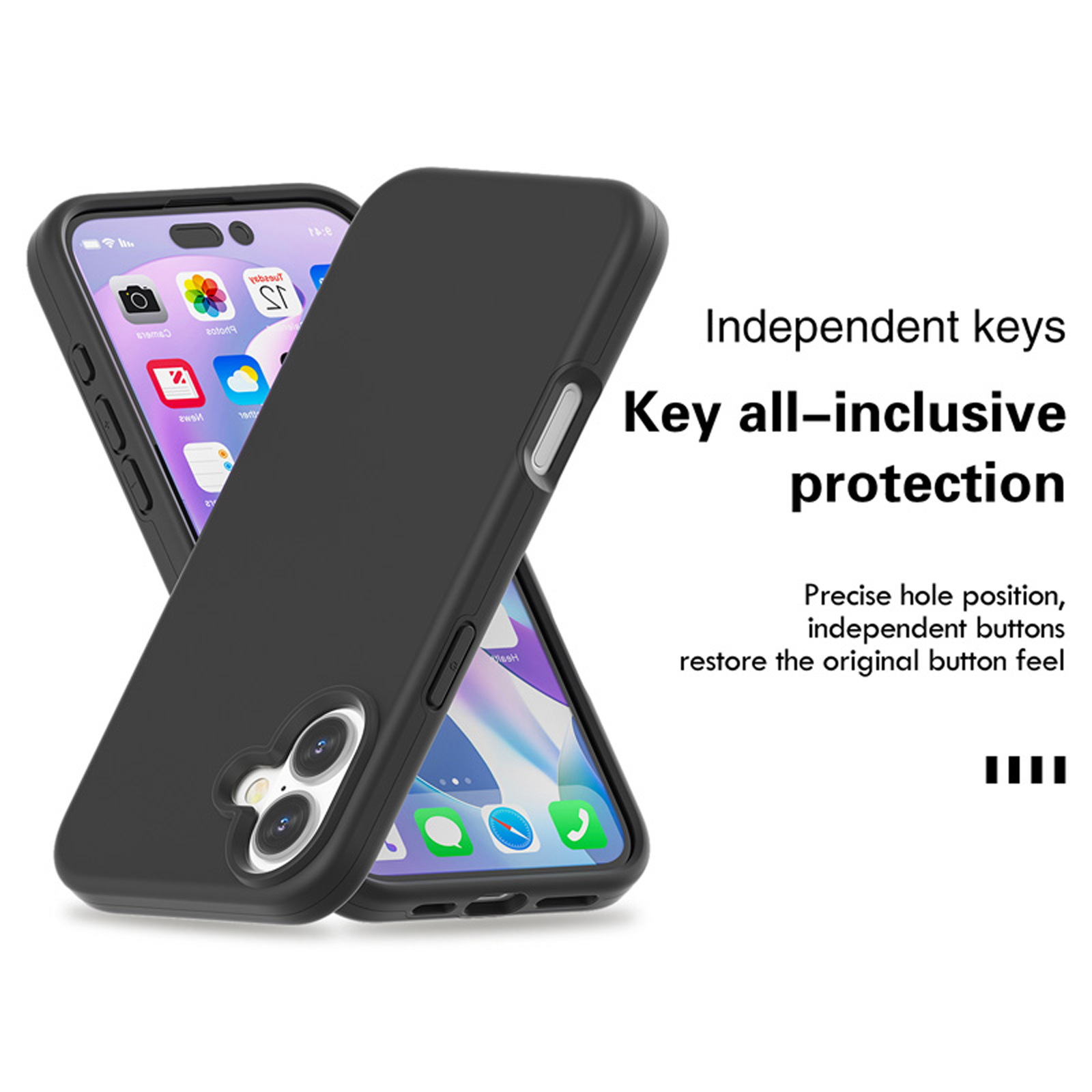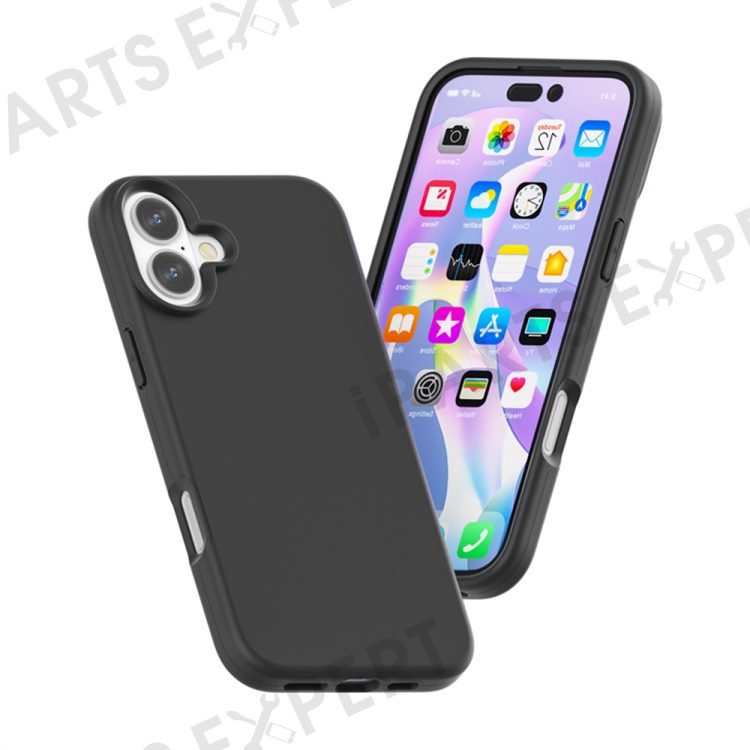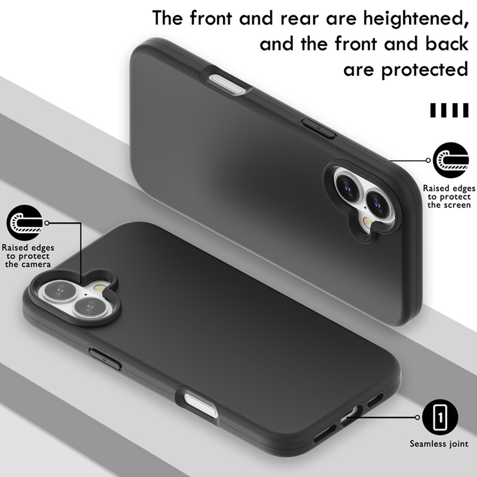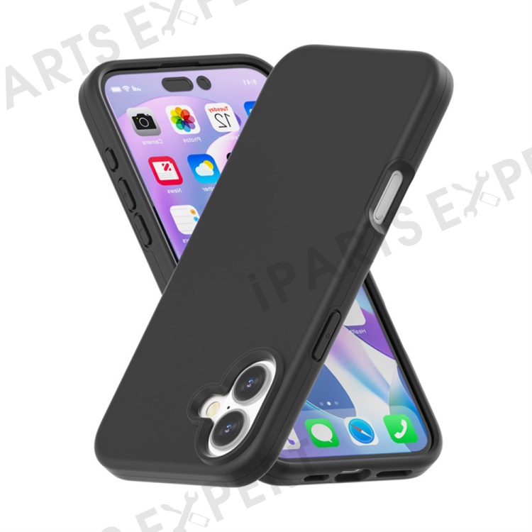 For iPhone 16 Plus Case TPU + PC Matte Translucent Phone Back Cover - Black