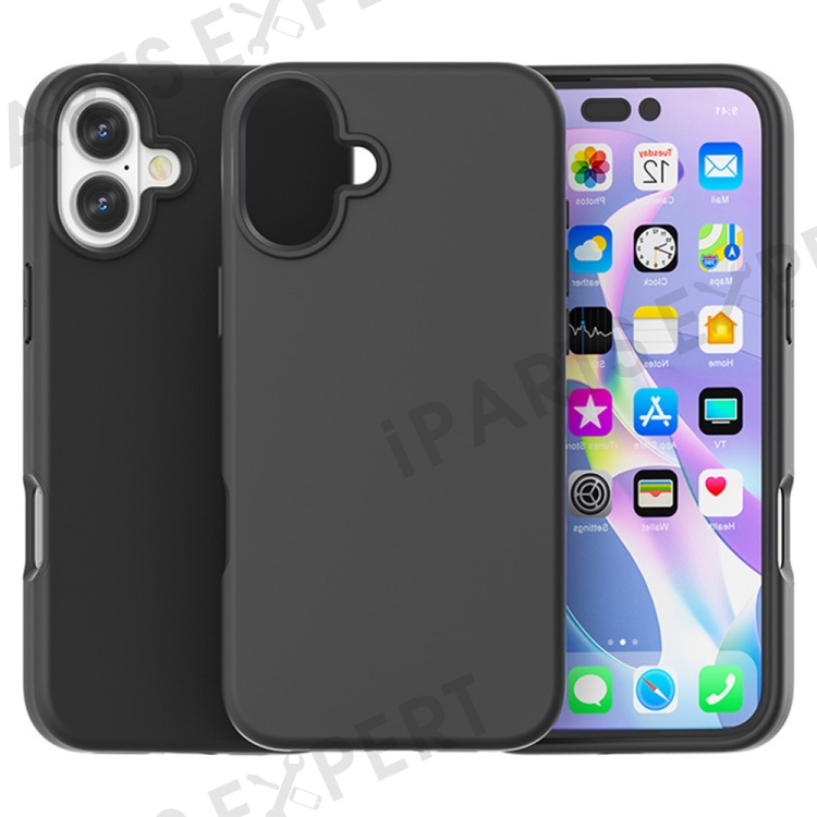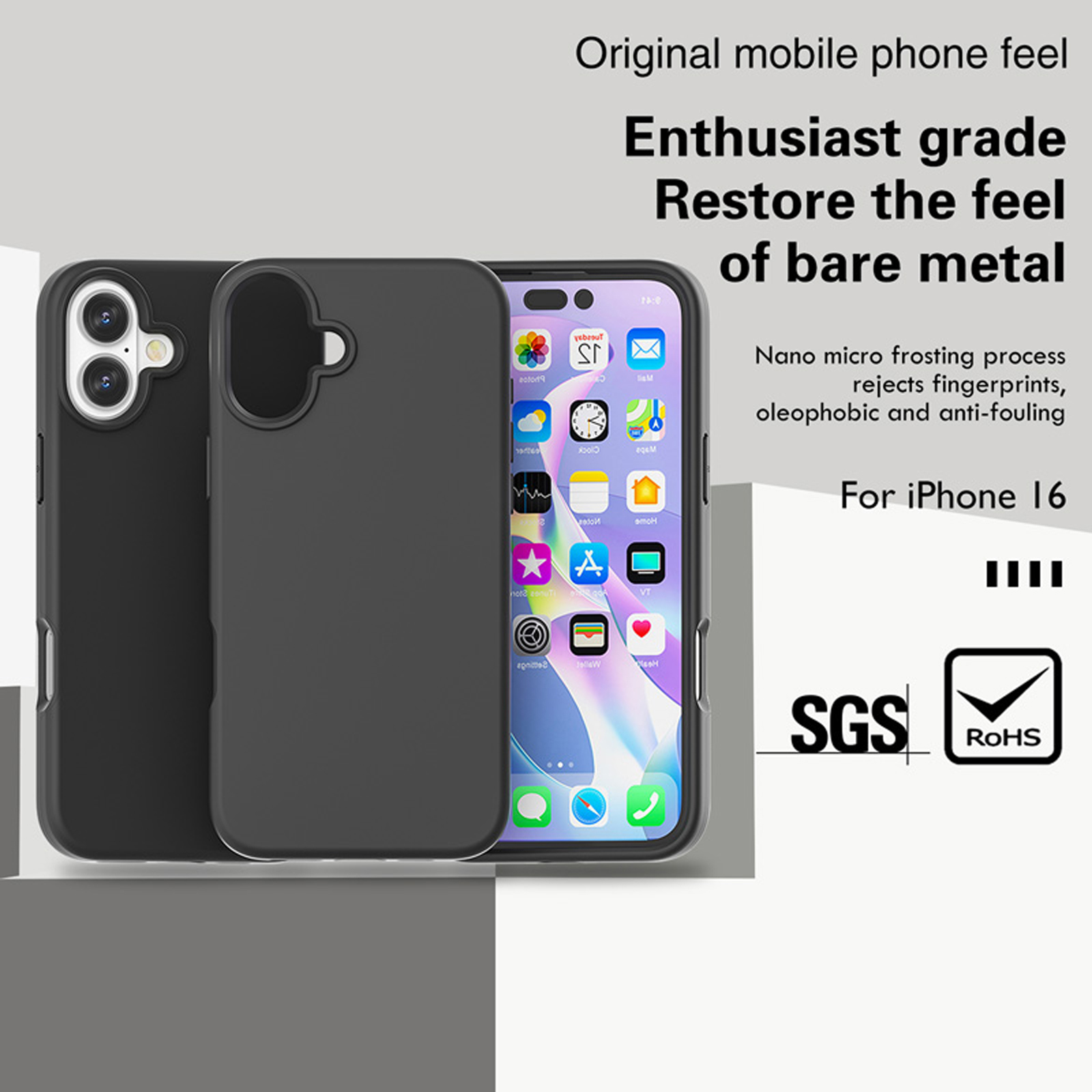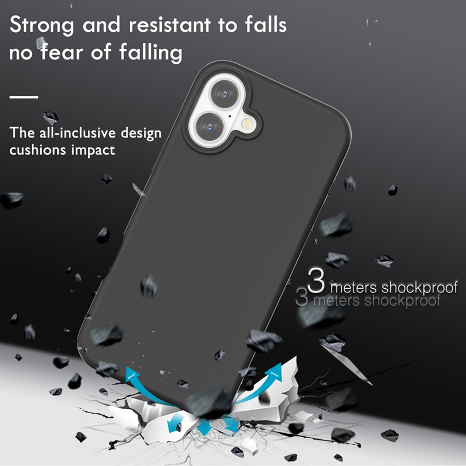 For iPhone 16 Plus Case TPU + PC Matte Translucent Phone Back Cover - Black