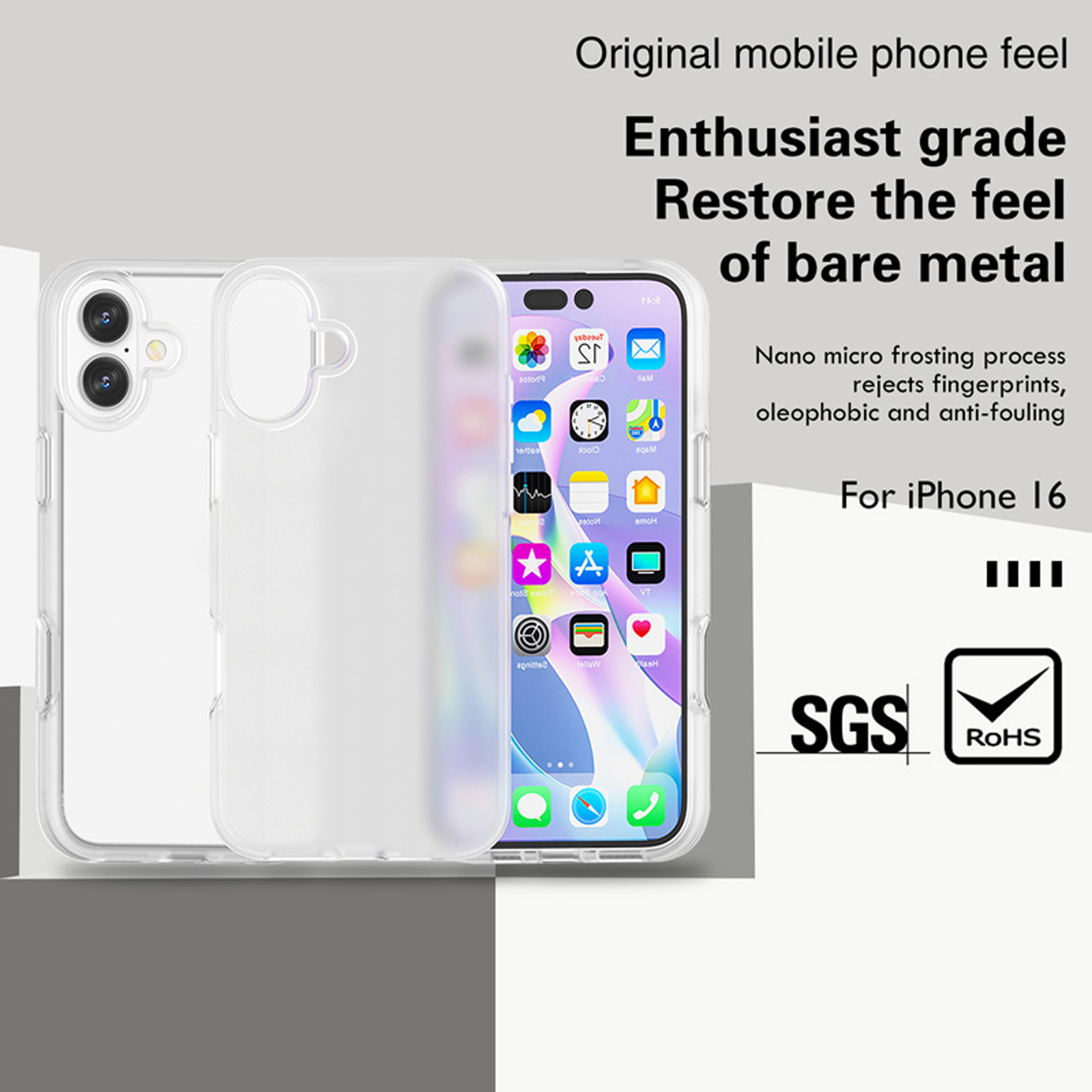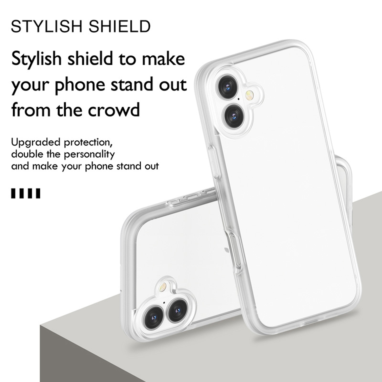 For iPhone 16 Plus Case TPU + PC Matte Translucent Phone Back Cover - White