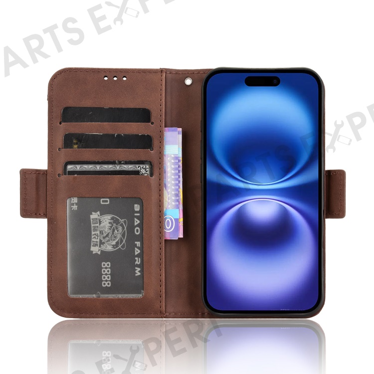 For iPhone 16 Plus Leather Case Phone Wallet Cover with Multiple Card Slots - Brown