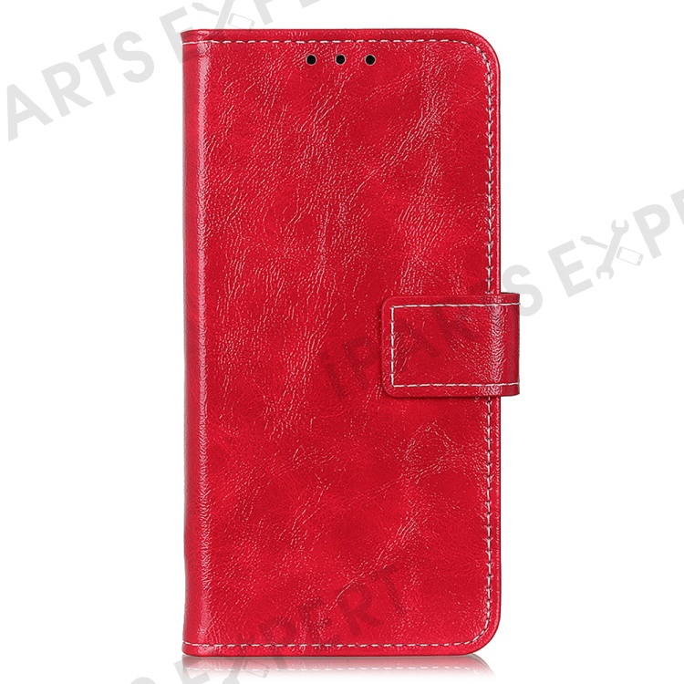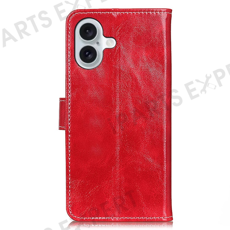 For iPhone 16 Plus Leather Case Wallet Stand Retro Crazy Horse Texture Phone Cover - Red