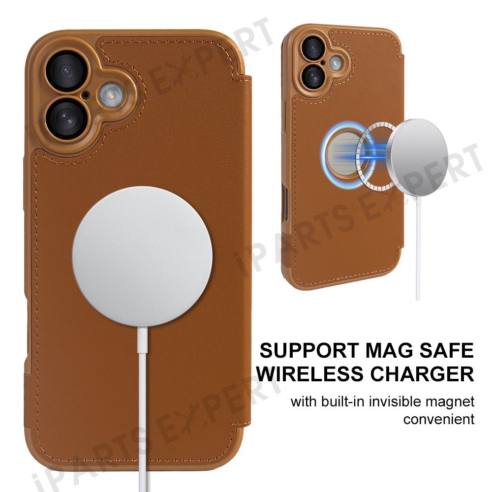 For iPhone 16 Plus Magnetic Case RCS Eco Friendly Phone Cover with RFID Blocking - Brown