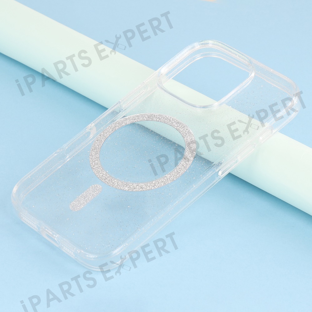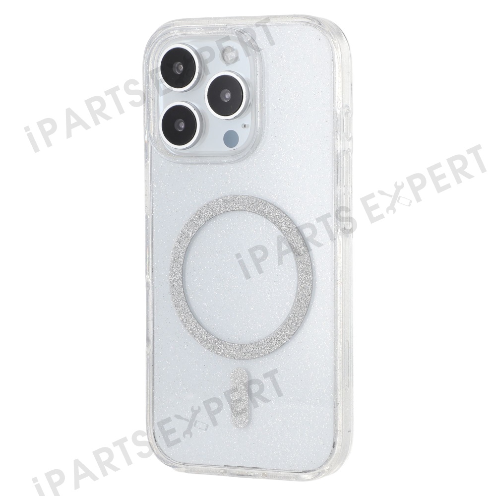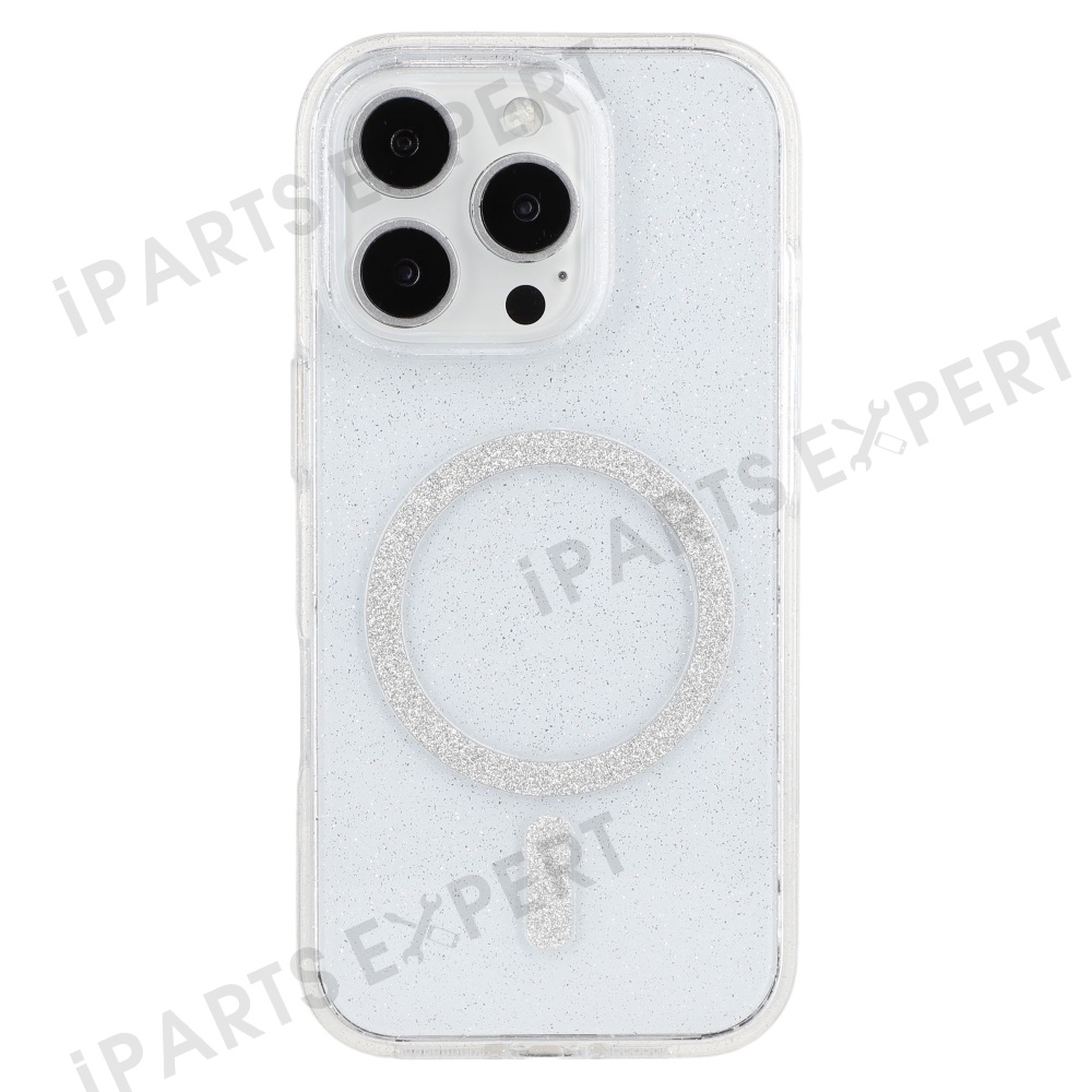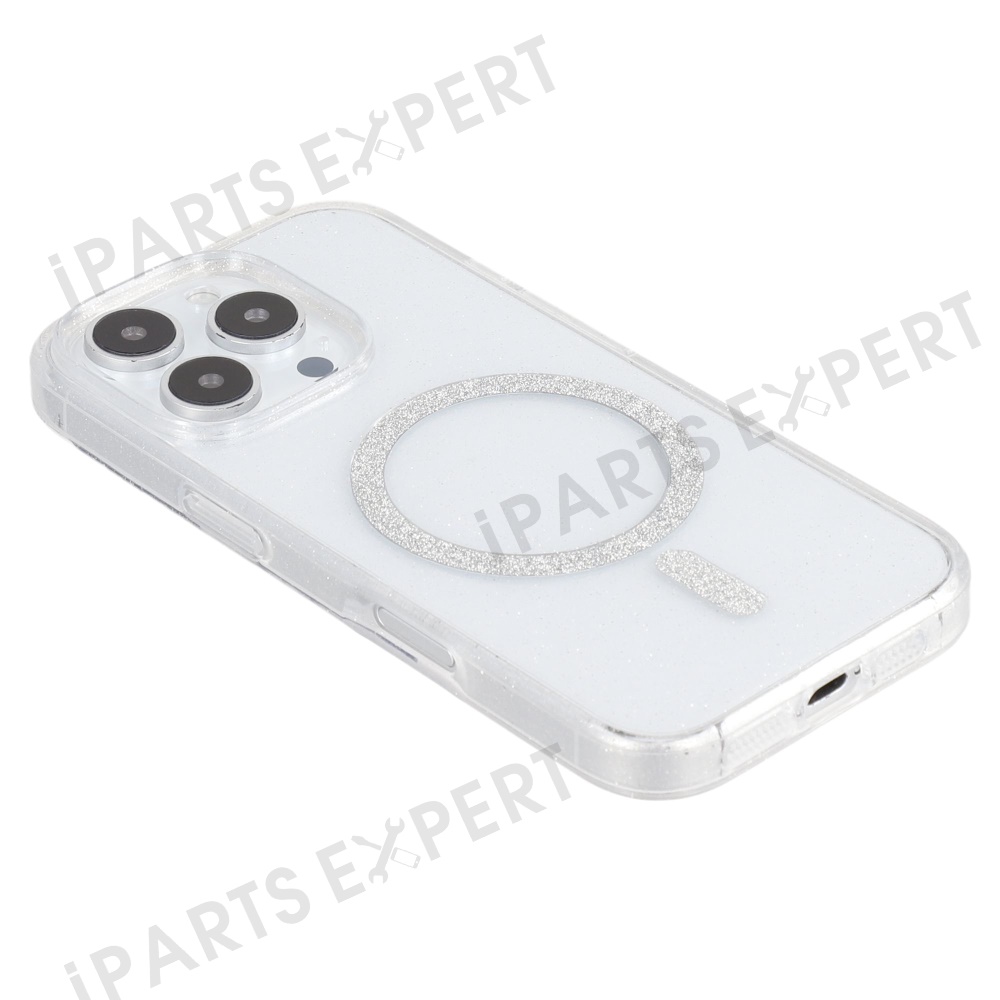 For iPhone 16 Pro Case Compatible with MagSafe 2.0mm PC + TPU Glitter Phone Cover - Transparent