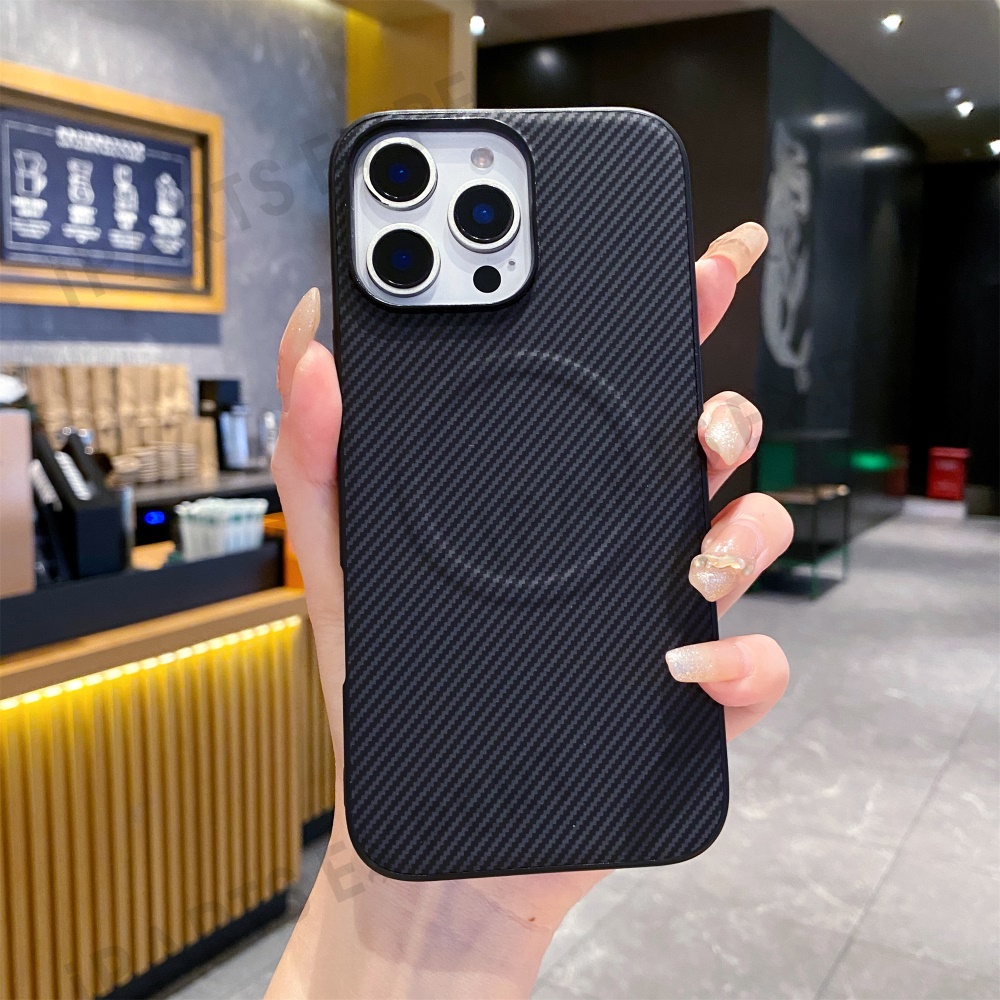 For iPhone 16 Pro Case Compatible with MagSafe Carbon Fiber Texture Leather + PC Phone Cover - Black