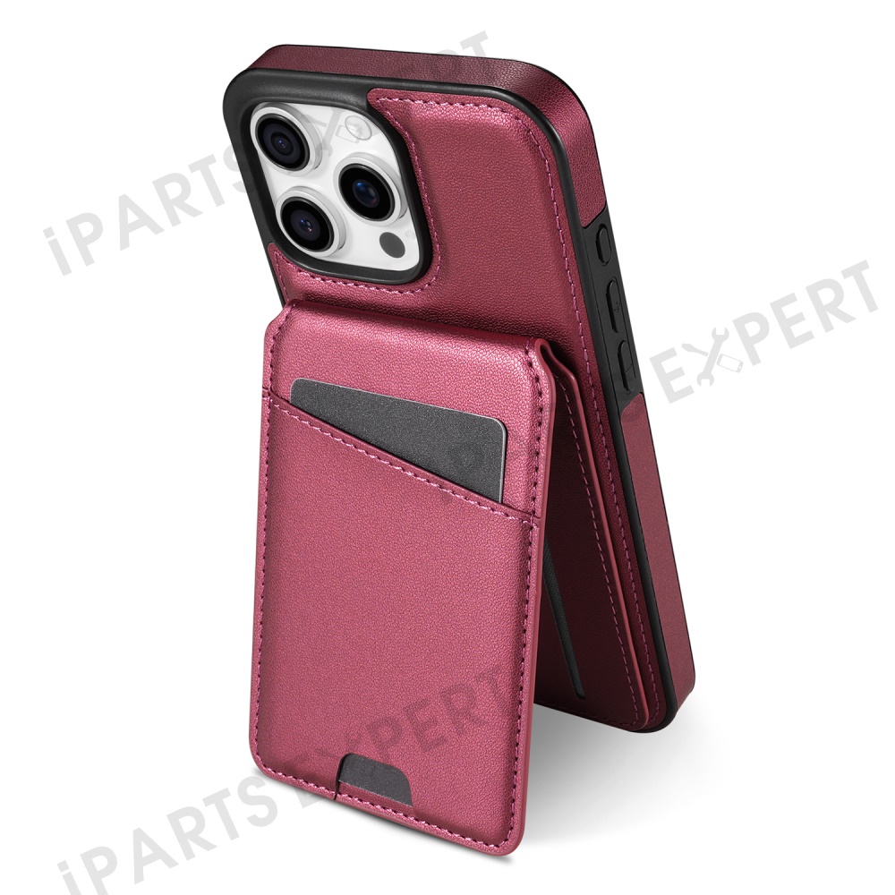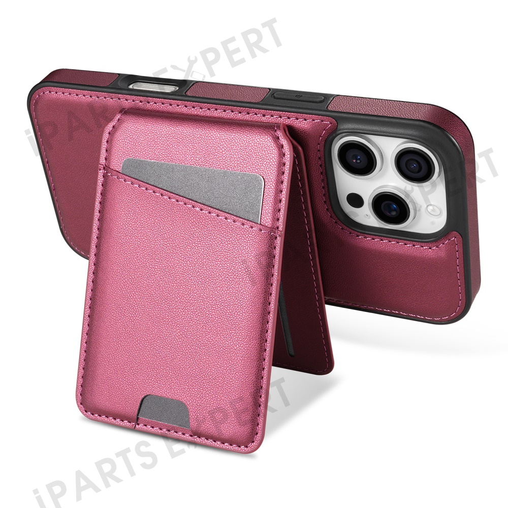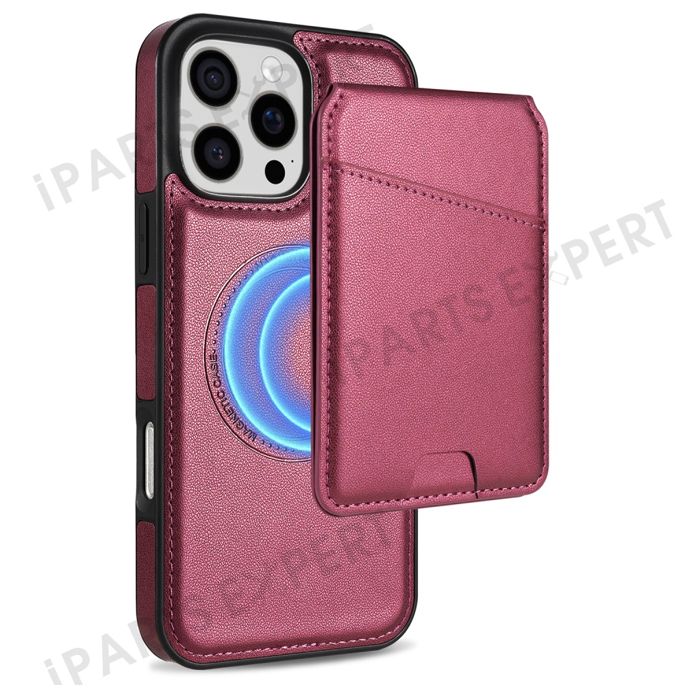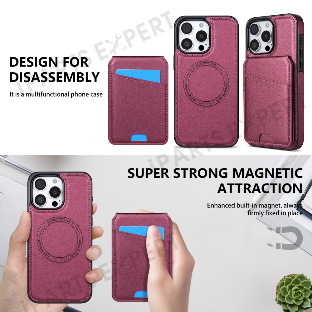 For iPhone 16 Pro Case Compatible with MagSafe Detachable Card Holder Kickstand Leather Phone Back Cover - Red
