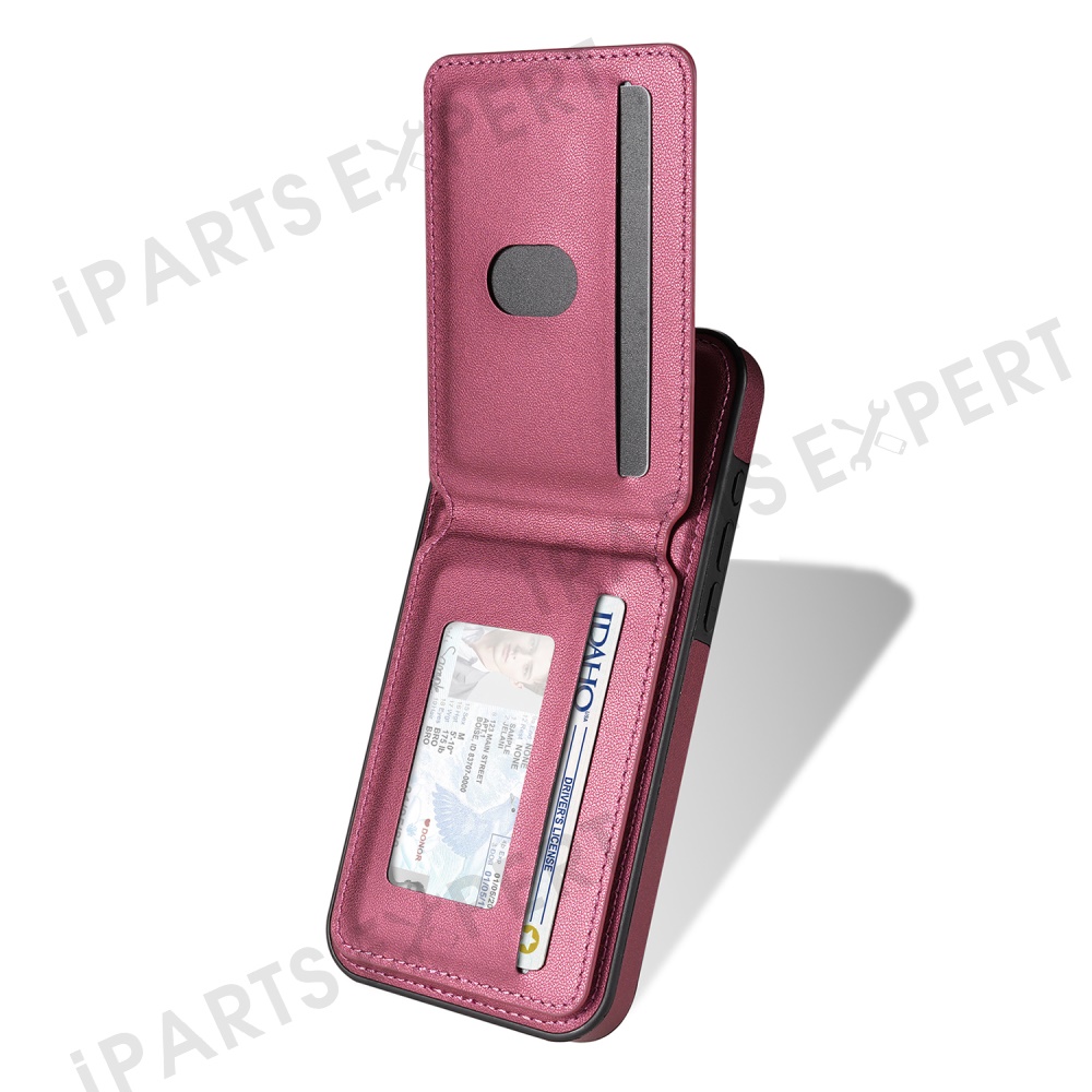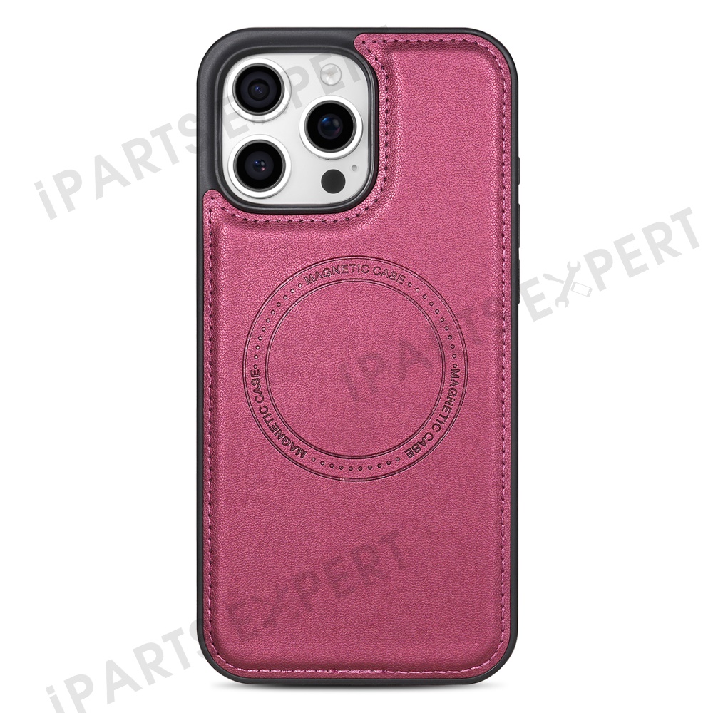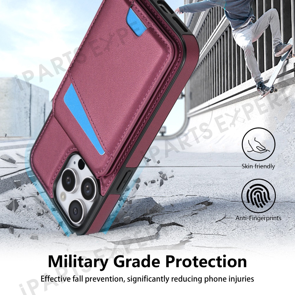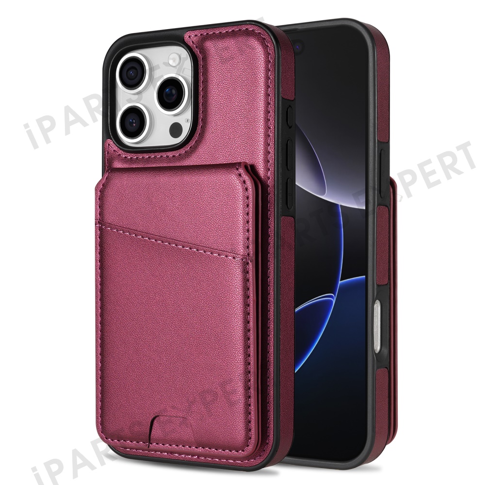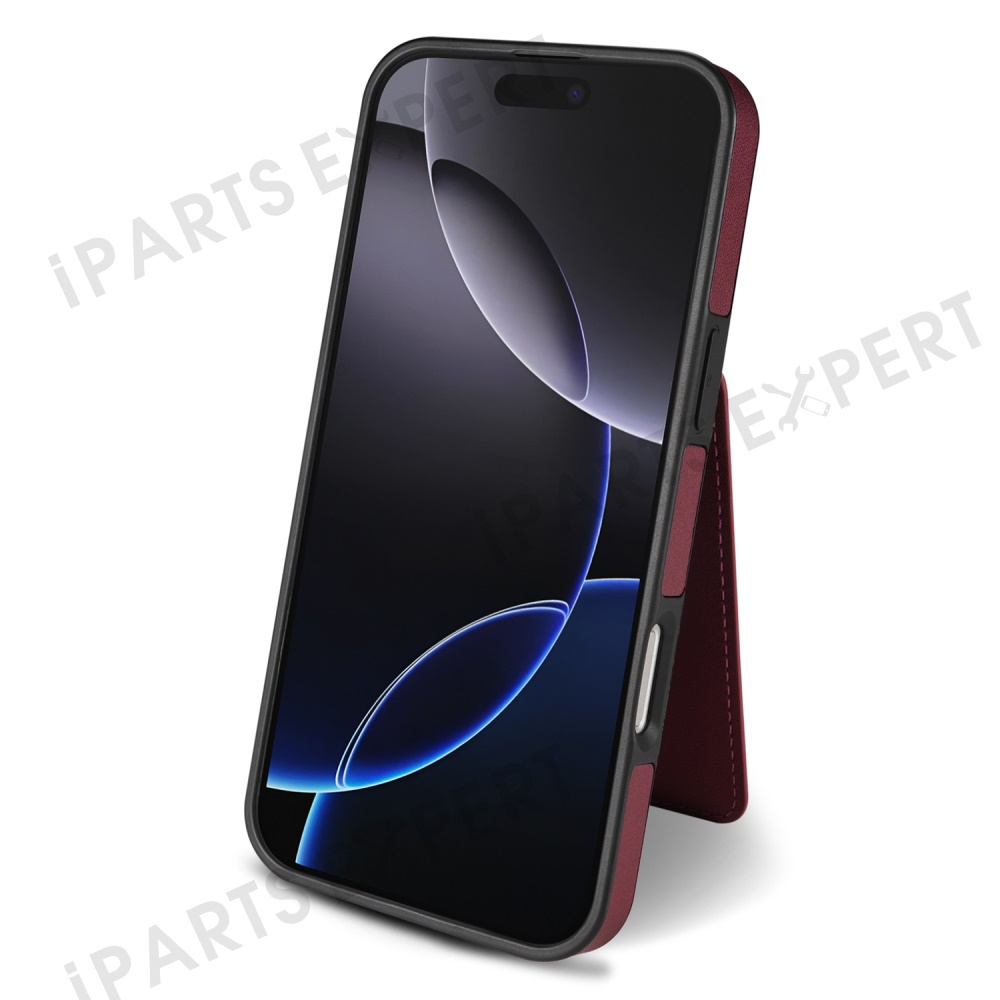 For iPhone 16 Pro Case Compatible with MagSafe Detachable Card Holder Kickstand Leather Phone Back Cover - Red