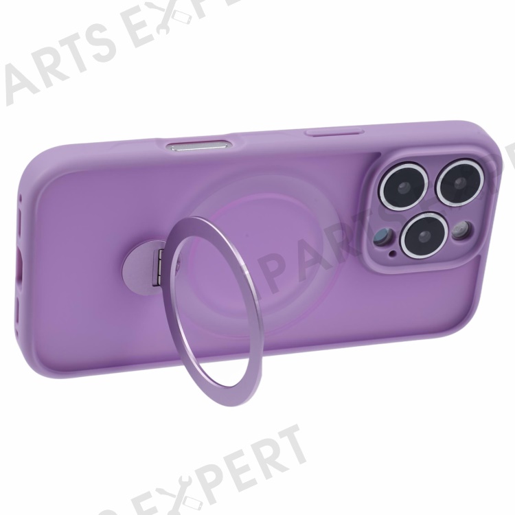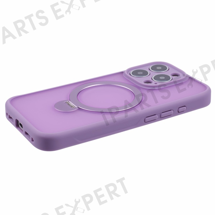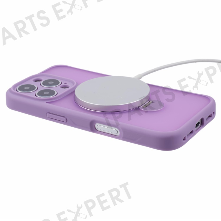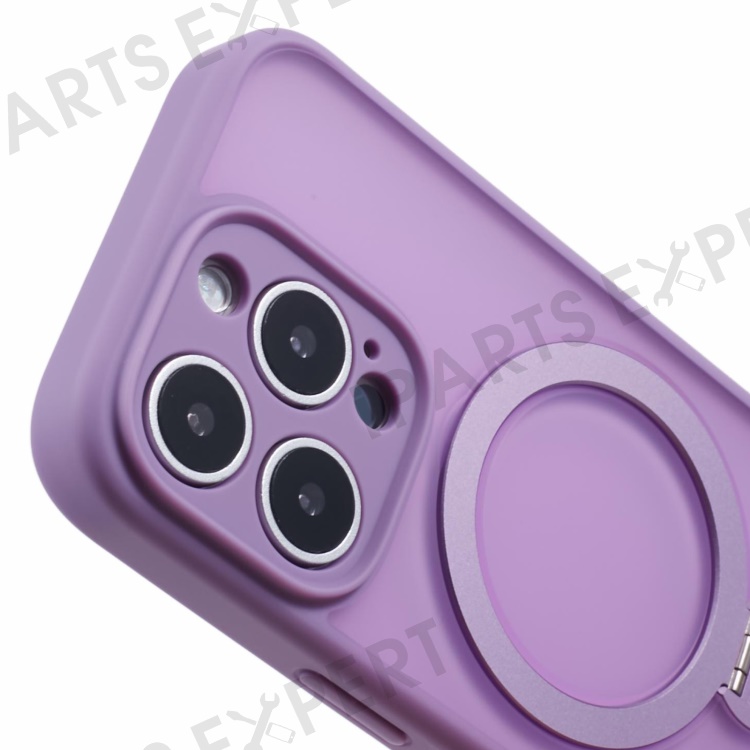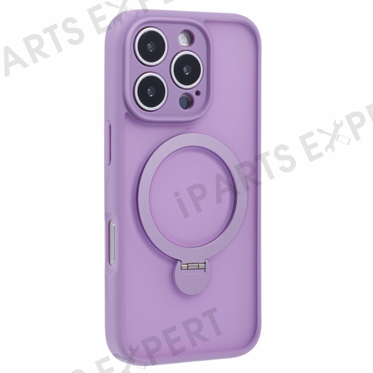 For iPhone 16 Pro Case Compatible with MagSafe Matte TPU+PC Rotary Kickstand Phone Cover - Purple