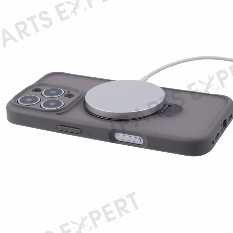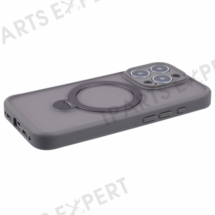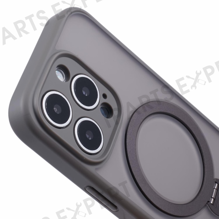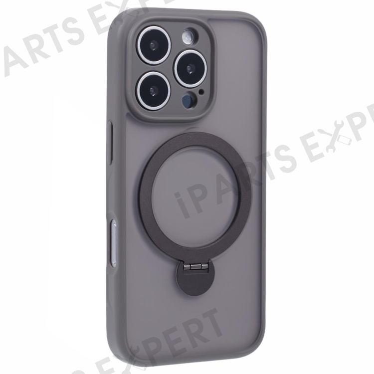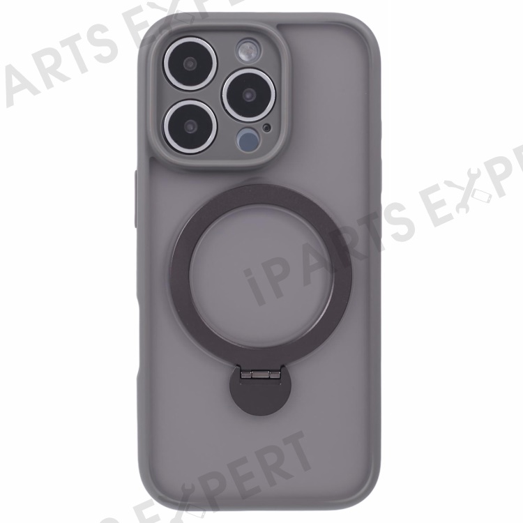 For iPhone 16 Pro Case Compatible with MagSafe Matte TPU+PC Rotary Kickstand Phone Cover - Titanium Grey