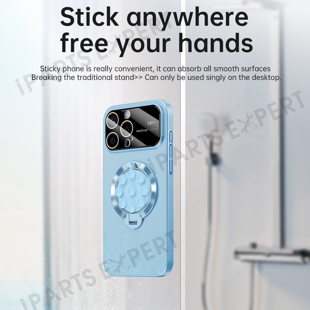 - 【Suction Cup Kickstand】 allows you to easily place your phone on a flat desktop or attach it securely to smooth wall surfaces for hands-free viewing.
