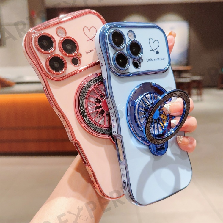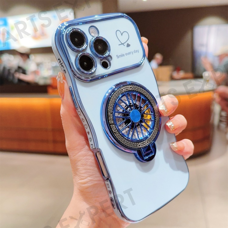 For iPhone 16 Pro Case Electroplating Gyro Design Kickstand Soft TPU Phone Cover - Blue
